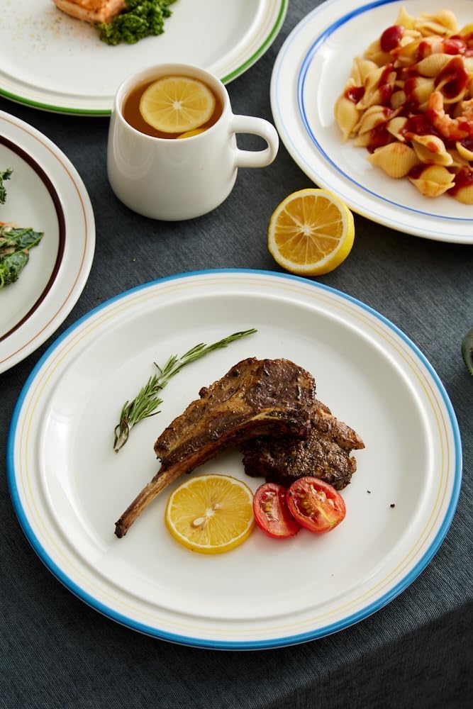 • DINNER PLATES FOR 6: Each plate measures 10.5" in diameter. Perfect for main course pasta, salads, sandwiches, and steak, they are also suitable for foods with soup. These dinner plates feature a lip around the entire edge to prevent food from running away.