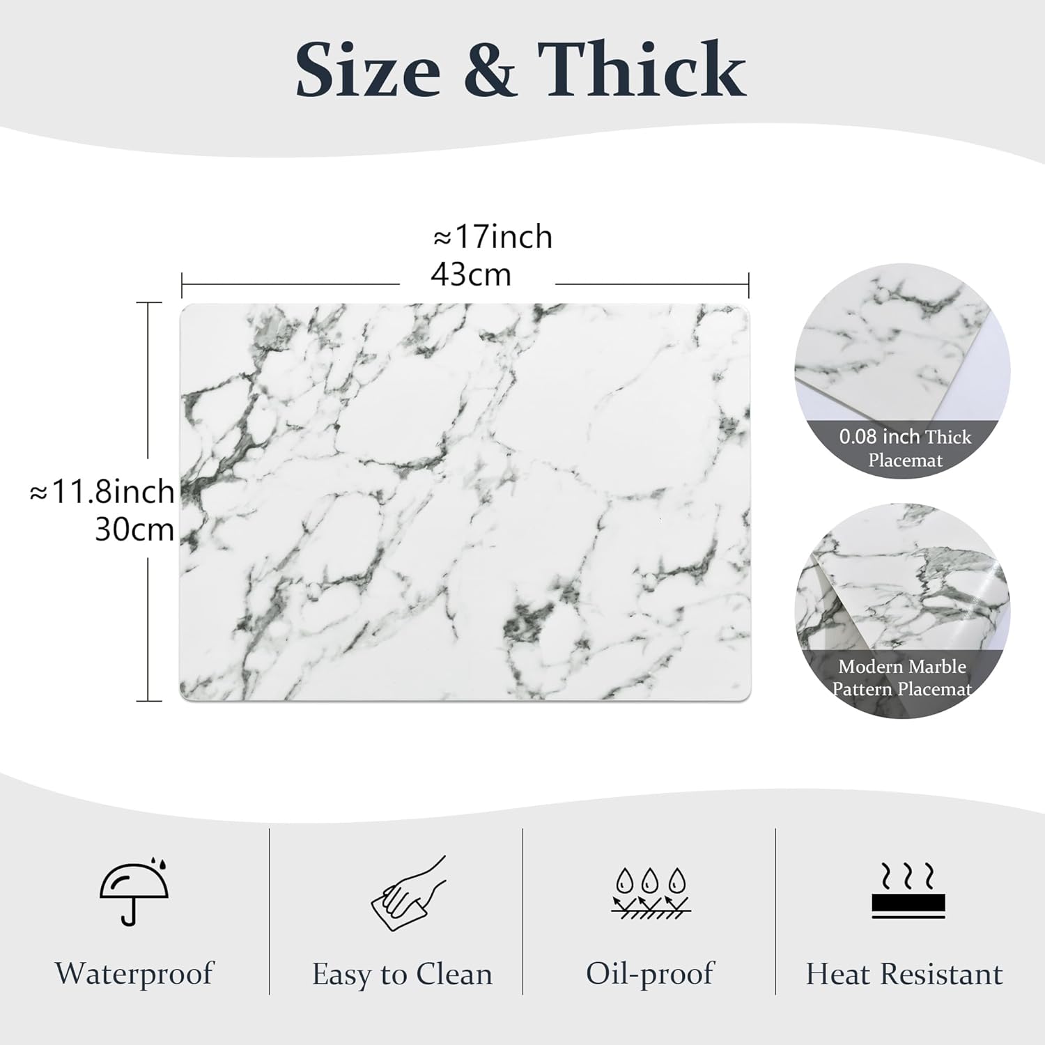 FROMHEART Faux Leather Placemats Set of 6–Waterproof,Heat/Oil Stain-Resistant PU Table Mat–Reversible,Easy to Clean Place Mats for Kitchen,Dining,Indoor/Outdoor,(Marble,11.8" x 17")