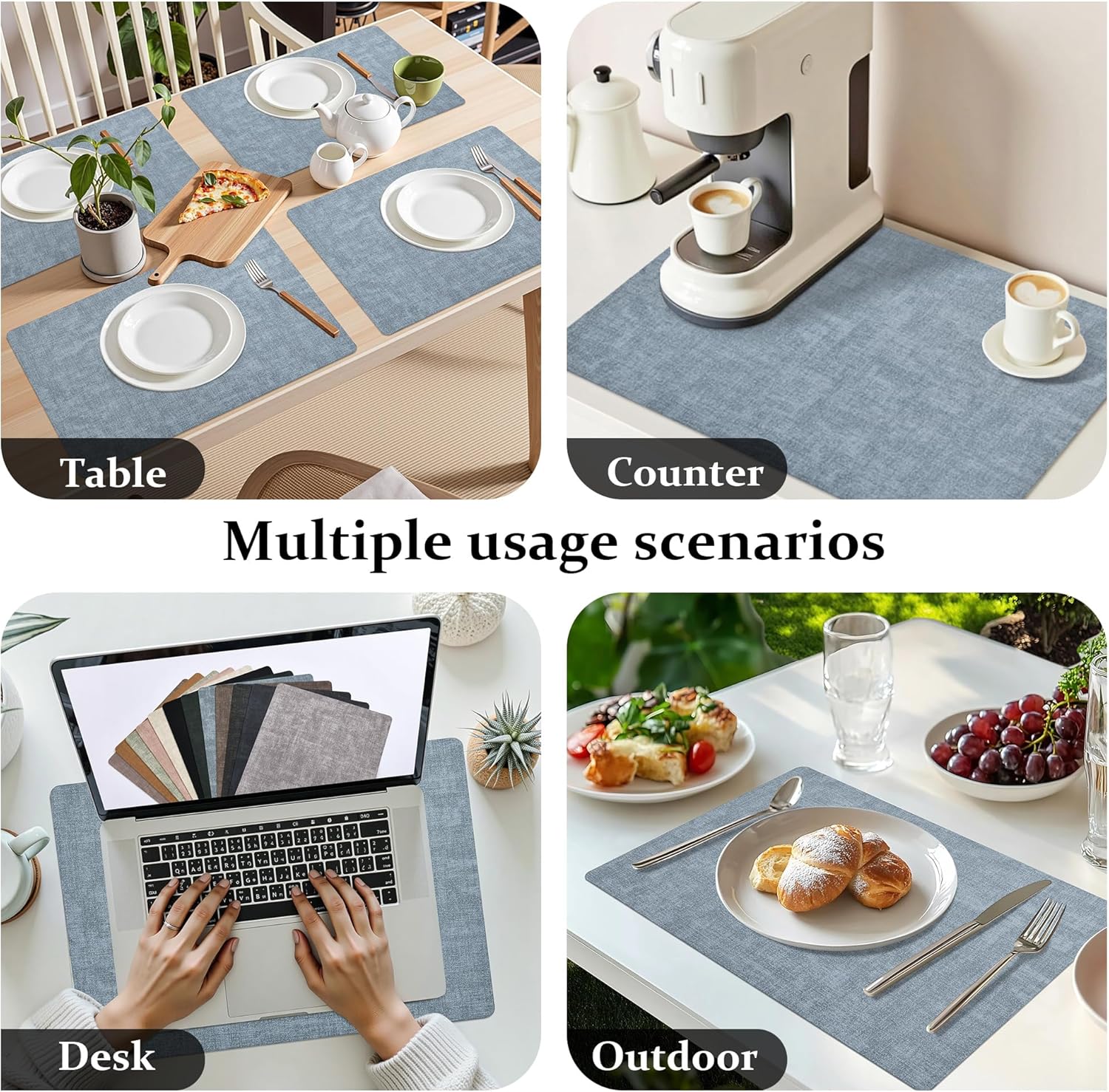 • Versatile for Indoor & Outdoor Use:From kitchen tables to patios and coffee shops, our placemats elevate any dining space. Available in a range of stylish colors to match modern, rustic, or minimalist décor. Perfect for daily meals, picnics, parties, and more.Can also be used as table mats, kitchen appliance mats.
