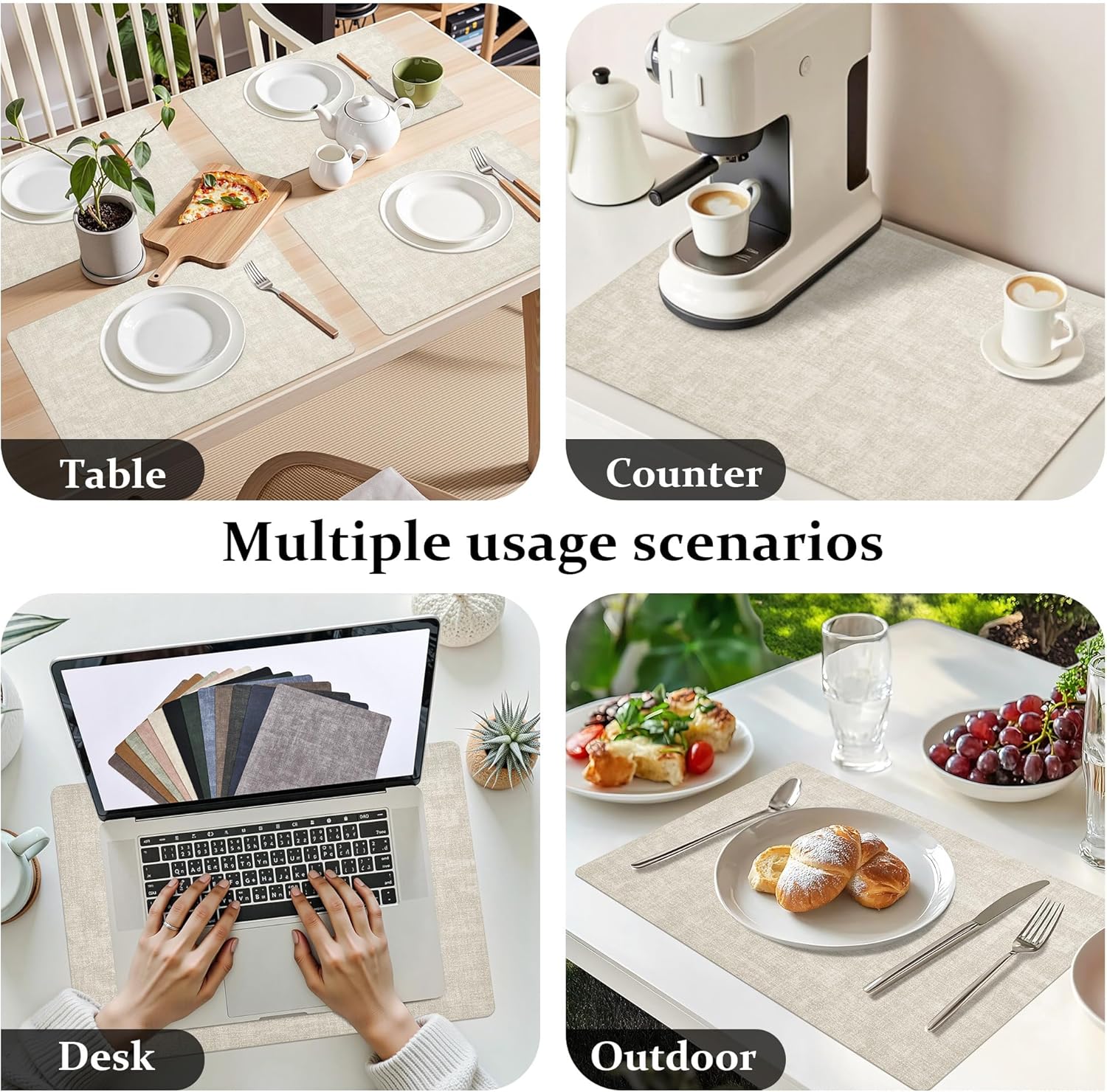 FROMHEART Faux Leather Placemats Set of 12–Waterproof,Heat/Oil Stain-Resistant PU Table Mat–Reversible,Non-Slip,Easy to Clean Place Mats for Kitchen,Dining,Indoor/Outdoor,(Beige,11.8" x 17")