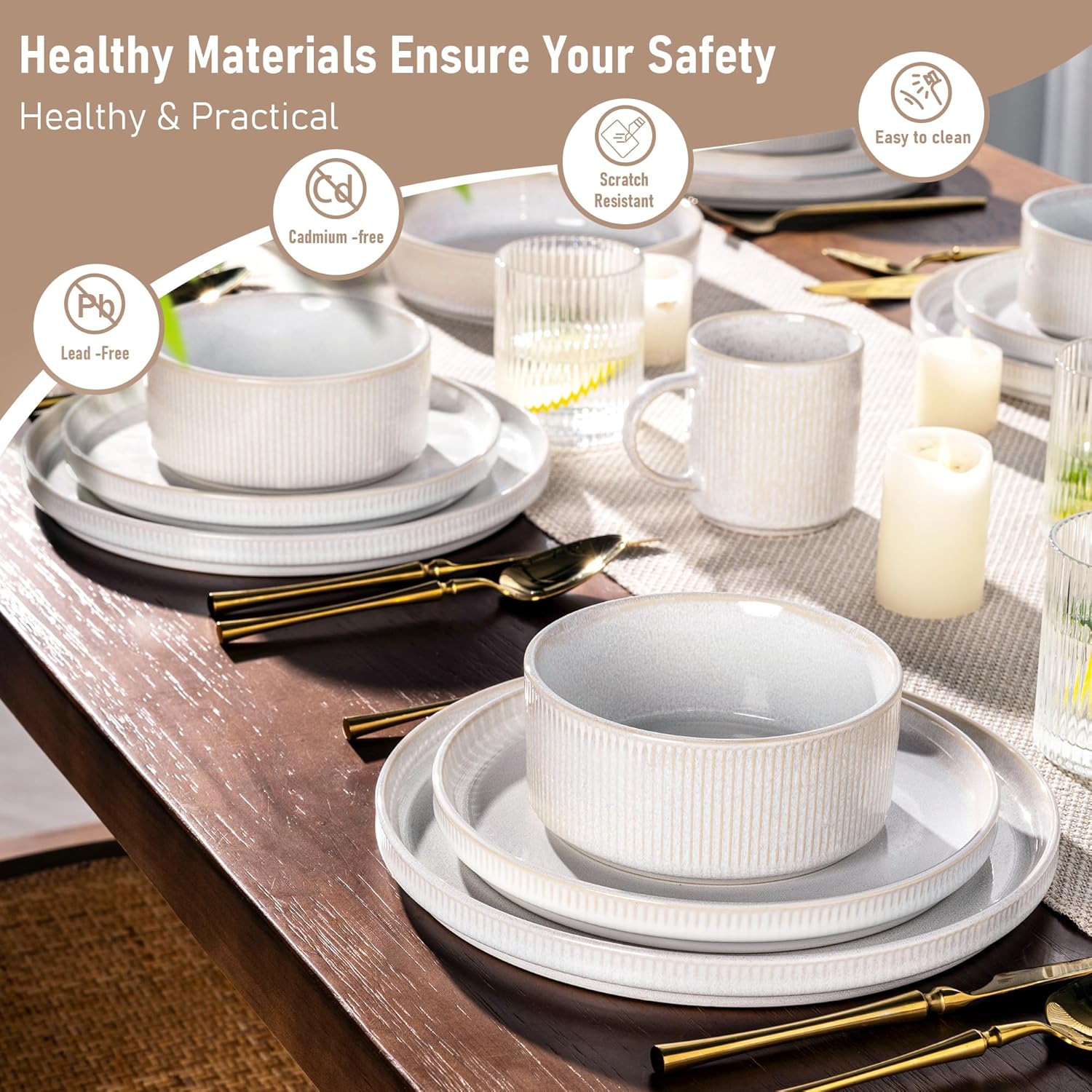- Healthy, Lead-Free & Chip-Resistant: Crafted from premium, double-fired ceramic, this dinnerware is lead-free and cadmium-free, ensuring no harmful chemicals leach into your food. The durable stoneware construction makes it exceptionally chip-resistant and built for long-lasting daily use.