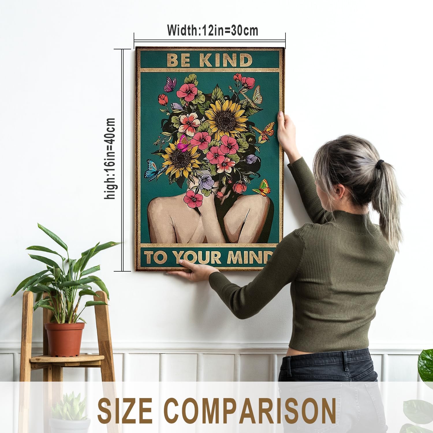 DIHSIEG Flower Canvas Wall Art Be Kind to Your Mind Vintage Poster Frameless Floral Can be hung on the Wall Heal Your Heart poster Wall Art Canvas(12x16 Dark Green)