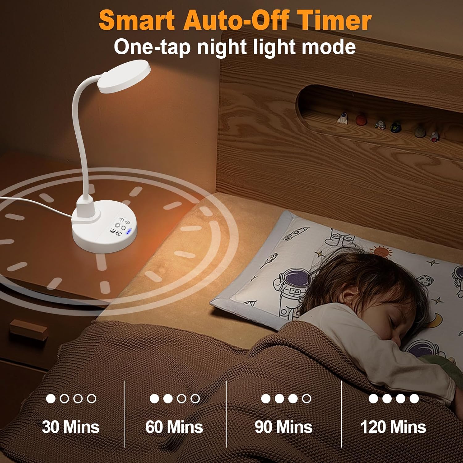 • Energy-Saving Timer & Night Light Mode – Set auto-off for 30/60/90/120 minutes plus one-tap night light mode for the lowest brightness. Perfect for bedtime reading, study sessions, or as a gentle nightstand lamp—saves energy and extends lamp life effortlessly.