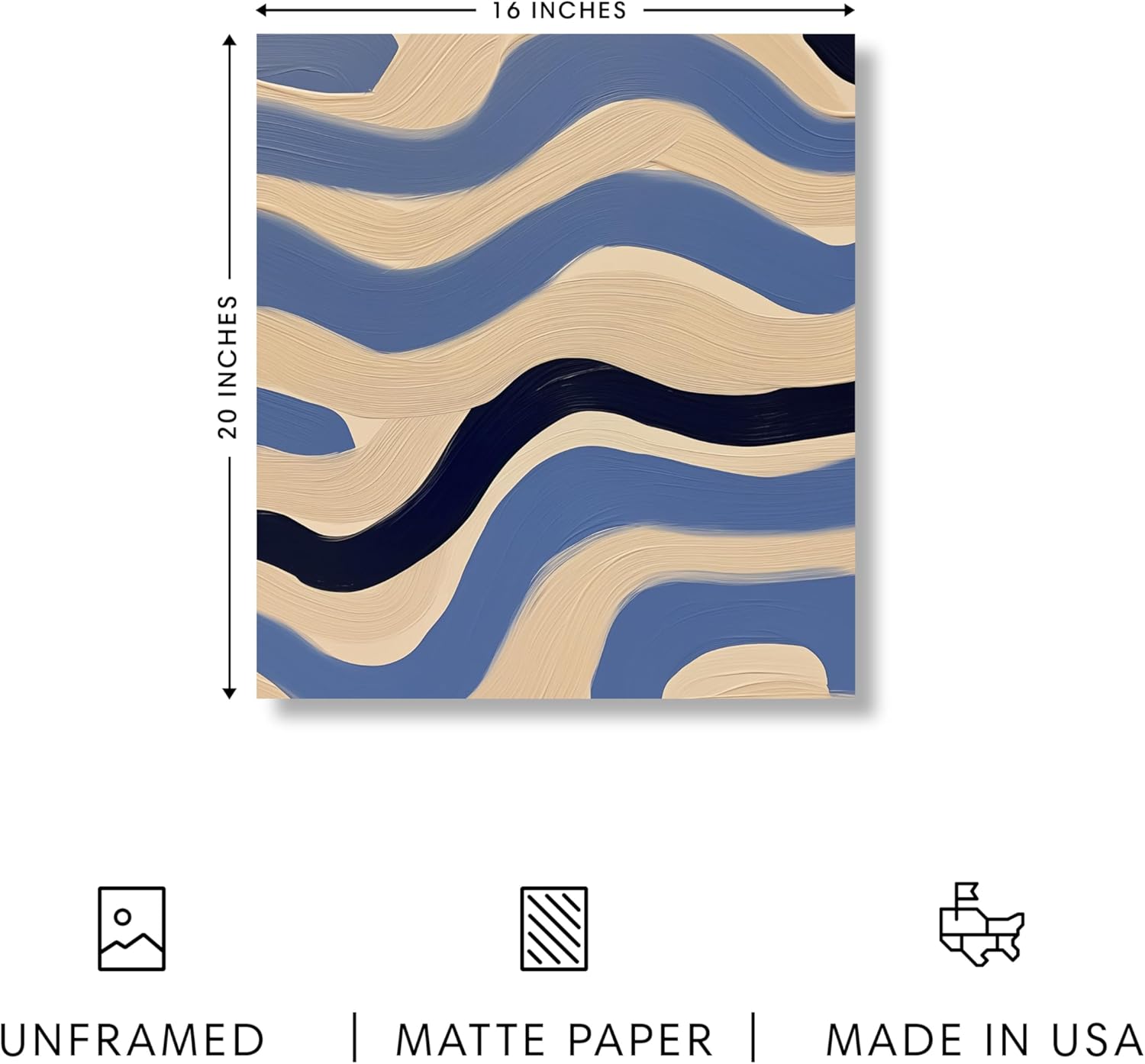 HAUS AND HUES Modern Abstract Wall Art - Blue and Green Living Room Art, Modern Artwork for Walls, Minimalist Picture for Living Room(Blue Abstract Pattern 4, Unframed, 16x20)