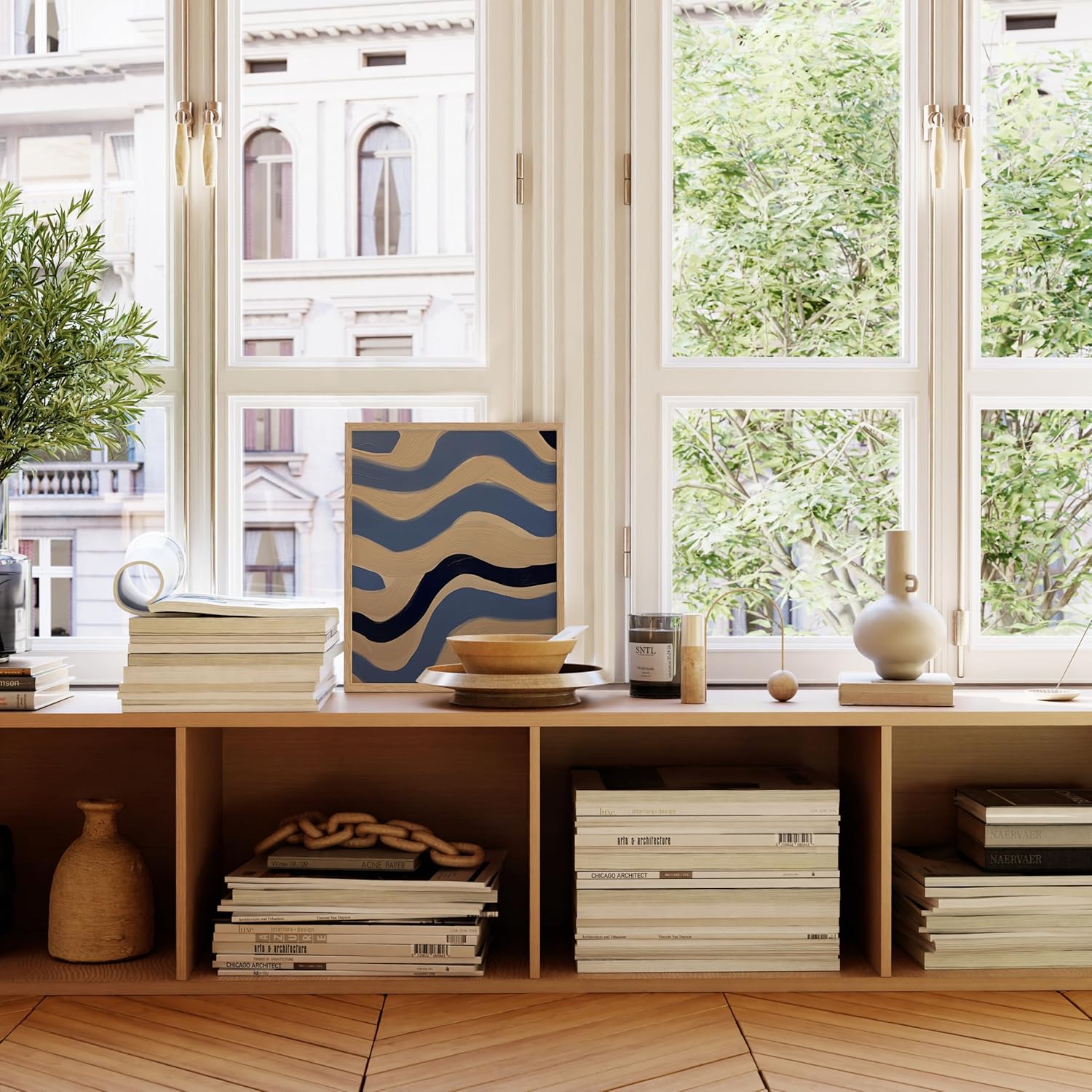 - PREMIUM WALL ART: To achieve the craftsmanship we’re known for, we use a printing technique on matte paper. The paper used for our living room paintings for the wall is sustainably sourced, and our inks are water-based. This modern artwork is equipped with plexiglass covered by protective film and two metal hangers for horizontal or vertical hanging. The minimalist wall art is shipped in a durable box for protection in transit.