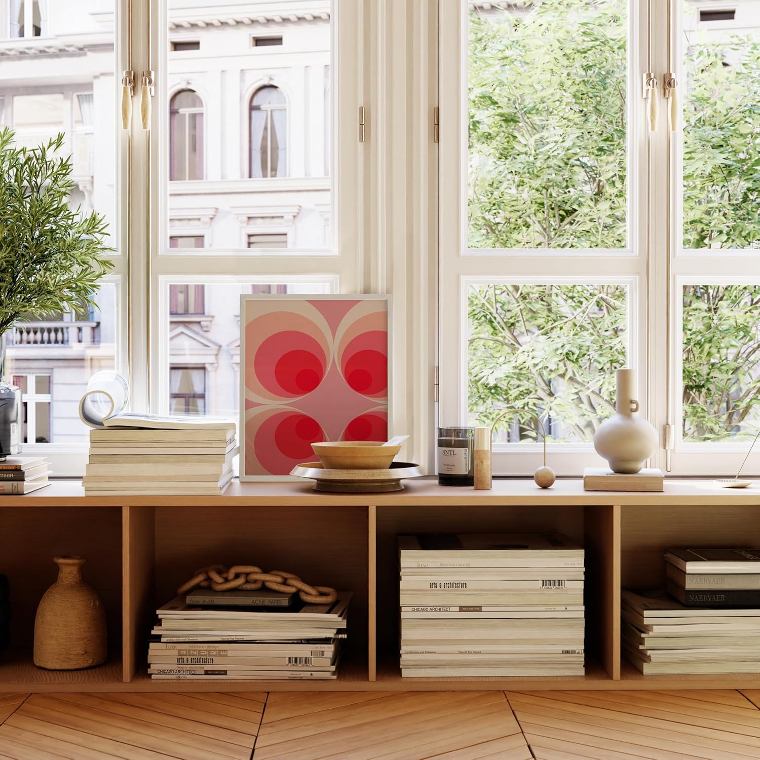 HAUS AND HUES Colorful Abstract Wall Art - Minimalist Retro Picture for Living Room Decor, Red and Pink Modern Wall Art Painting (Pink Mod, White Frame, 16x20)