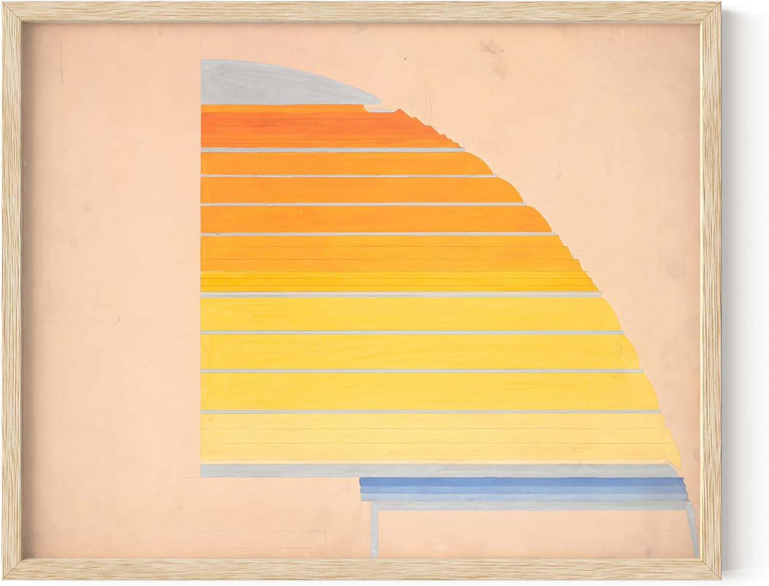 HAUS AND HUES Colorful Abstract Wall Art - Minimalist Retro Picture for Living Room Decor, Red and Pink Modern Wall Art Painting (Winold Reiss, Beige Frame, 11x14)