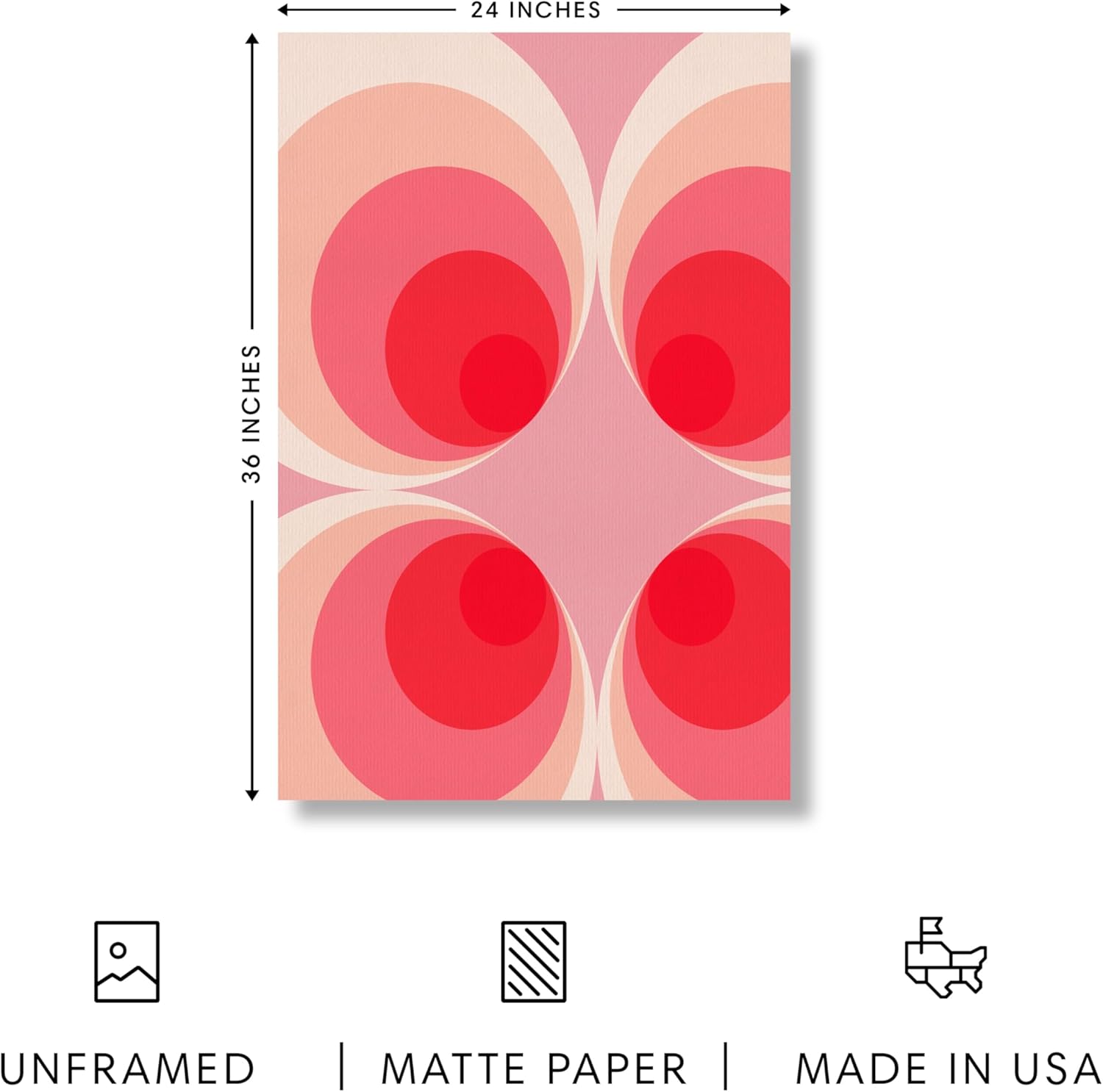 HAUS AND HUES Colorful Abstract Wall Art - Minimalist Retro Picture for Living Room Decor, Red and Pink Modern Wall Art Painting (Pink Mod, Unframed, 24x36)