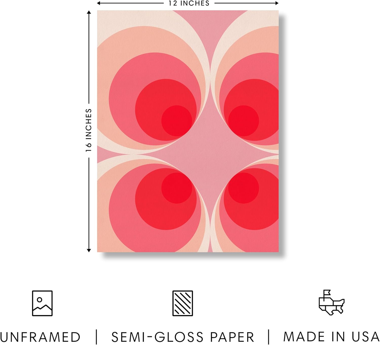 HAUS AND HUES Colorful Abstract Wall Art - Minimalist Retro Picture for Living Room Decor, Red and Pink Modern Wall Art Painting (Pink Mod, Unframed, 12x16)