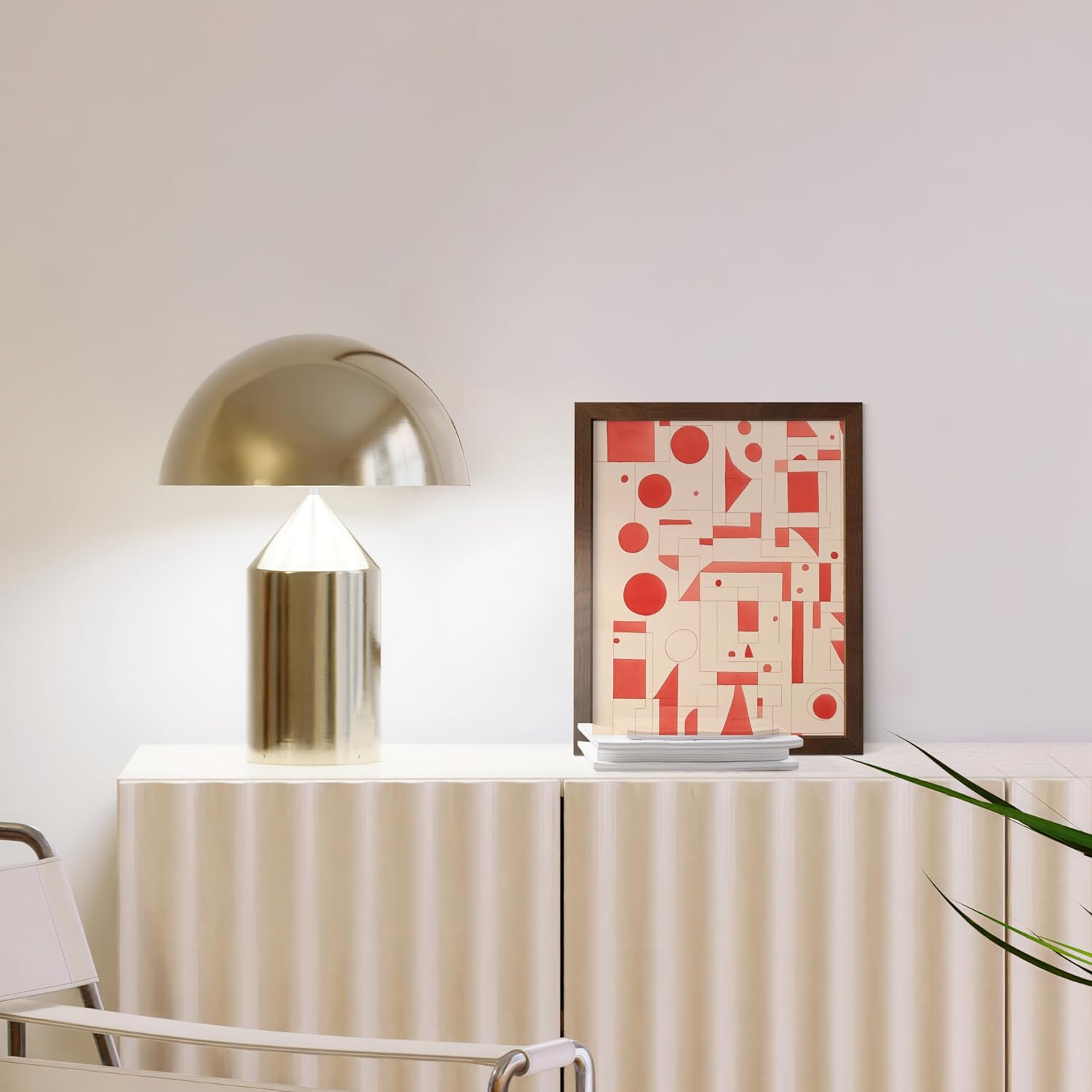 HAUS AND HUES Colorful Abstract Wall Art - Minimalist Retro Picture for Living Room Decor, Red and Pink Modern Wall Art Painting (Red Geometric, Walnut Frame, 8x10)