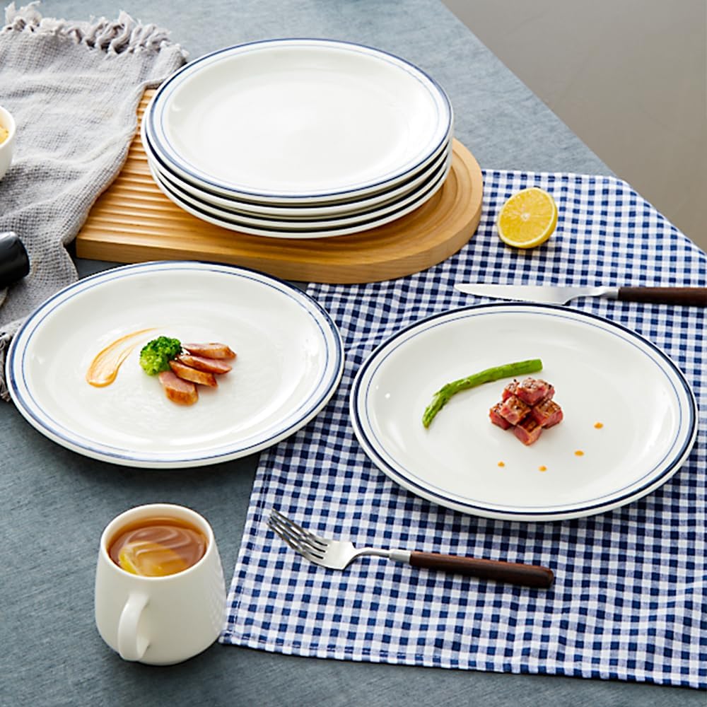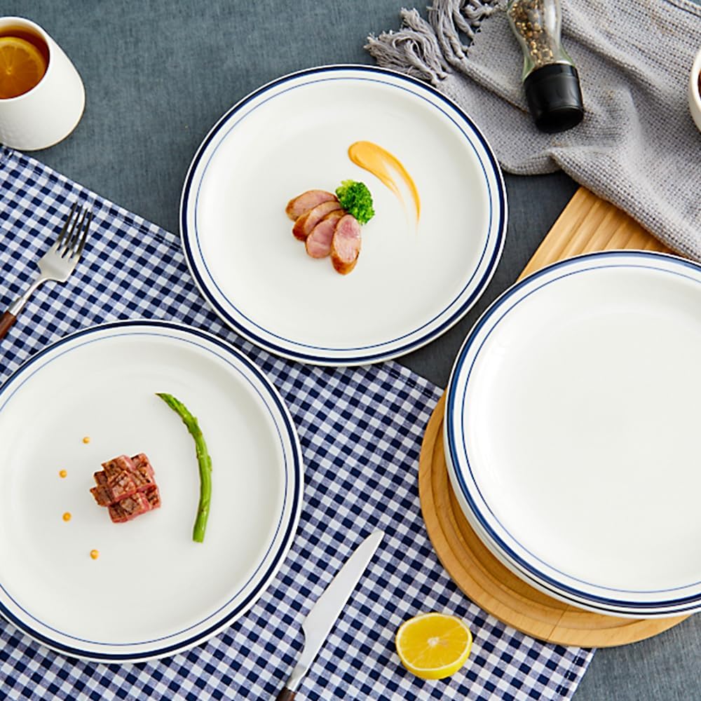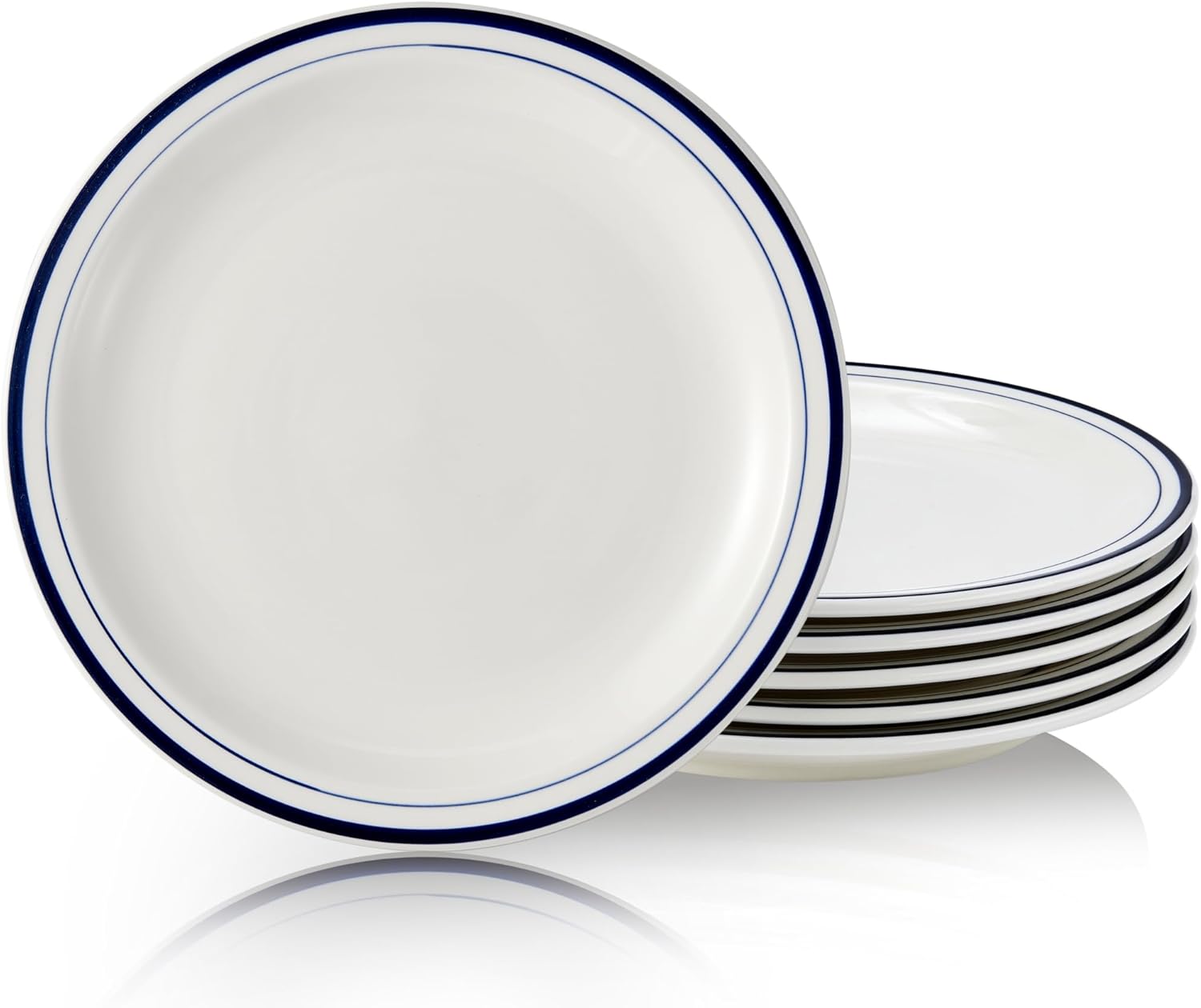 10.5-inch Porcelain Dinner Plate Set of 6 - Microwave, Oven and Dishwasher Safe, Scratch Resistant. (Classic Blue)