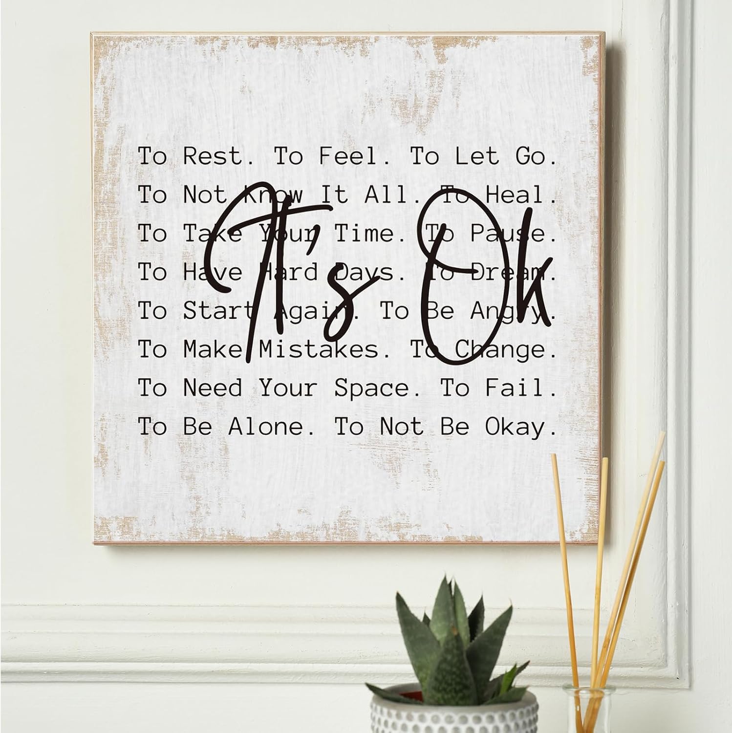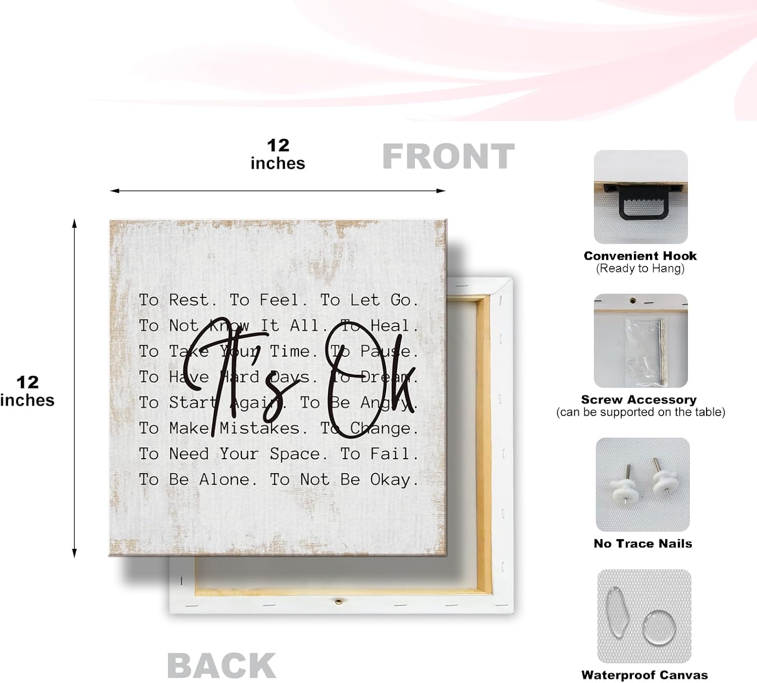 Inspirational Gifts for Women Men Canvas Wall Art Framed Painting Prints Wall Decor Motivational Decorative Mental Health Decorations for Bathroom Home Decor Office Accessories,11.8x11.8 Inch