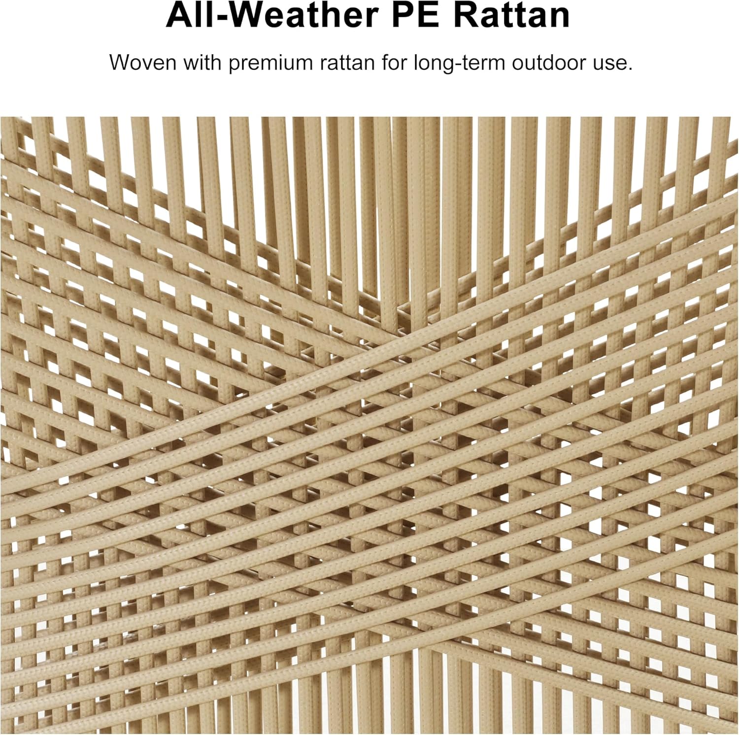 • PE Rattan Backrest: The chairs are thoughtfully designed with a PE rattan backrest, providing both style and durability. This intricate weaving technique not only adds visual appeal but also ensures long-lasting performance.