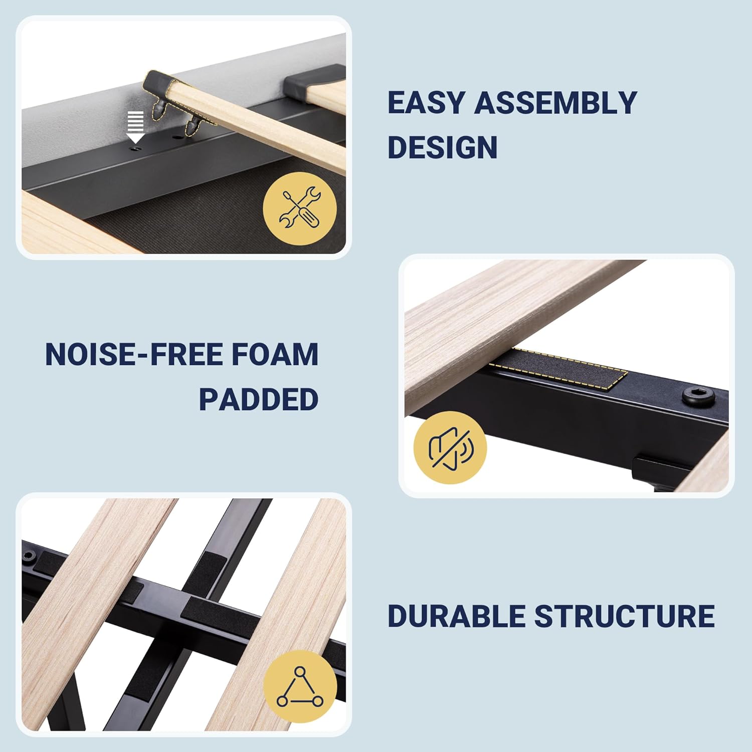 • No Box Spring Needed: Solid wood slats support. Durable wooden slats provide excellent mattress support and eliminate the need for a box spring. Comes in ONE box with a detailed instruction manual