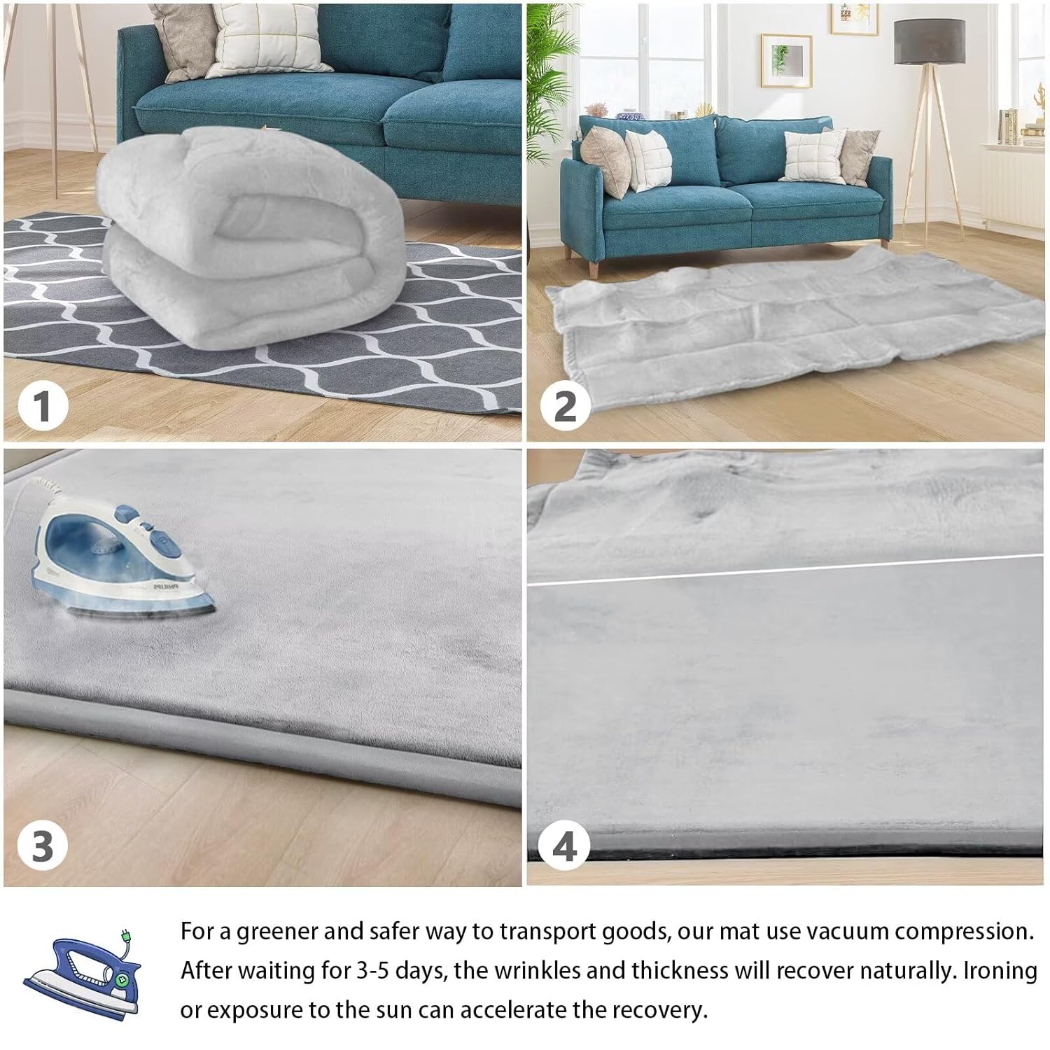 - ๐HOW TO CARE FOR YOUR MAT:When you open the package,it may be wrinkled,very flat and inelastic.Donโt fret - this is normal! As long as it is left for 3-5 days, the mat will naturally regain its thickness and elasticity. we recommend steaming or ironing it to speed up recovery. After you have completed the steaming/ironing, your thick floor padded mat should rebound and be ready to use!