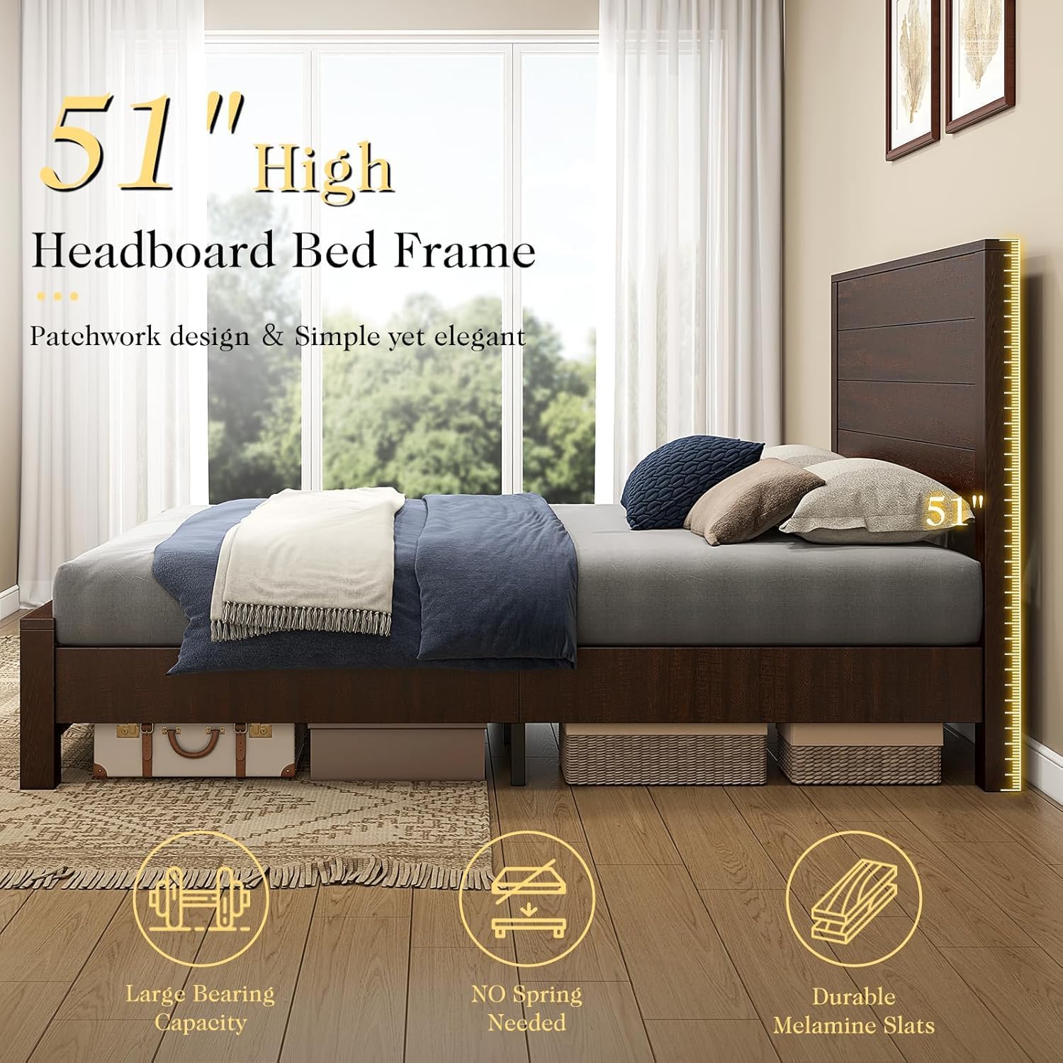 • Classic Design:51.2" H wood bed frame with natural finish features rustic style. Individually spliced headboard and footboard complement various bedroom décors.