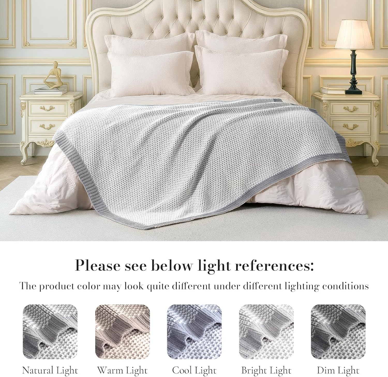 Amélie Home Honeycomb Knit Throw Blanket for Couch, Dual-Sided Soft Chenille Decorative Blankets for Sofa & Chair, 50"x60", Gray & White