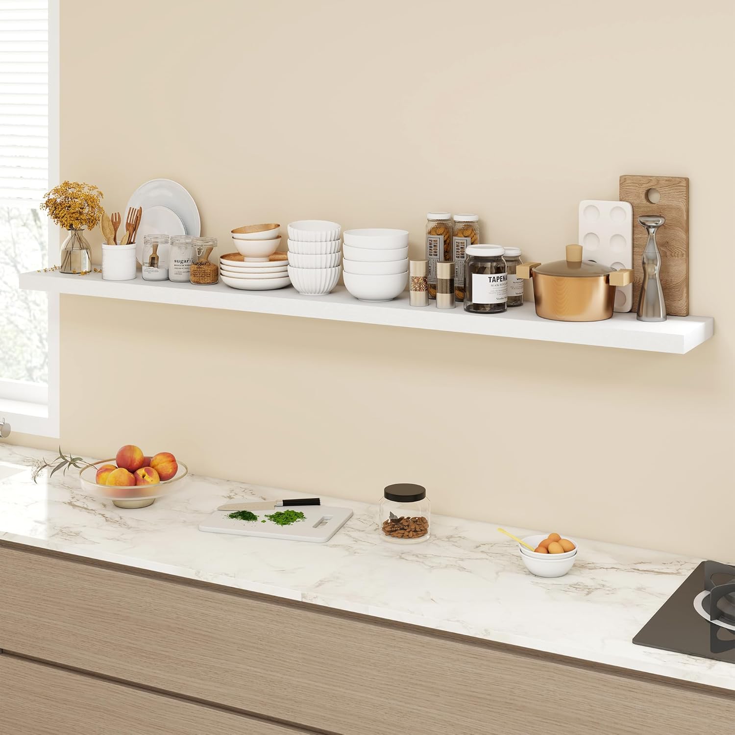 - [ROBUST & SECURE MOUNTING]: Equipped with a sturdy, hidden mounting bracket, these 72-inch floating shelves ensure solid support for your items. Designed for easy and secure installation, they come with all necessary hardware for a firm, wobble-free setup, allowing you to confidently display decor, photos, or functional items with style.