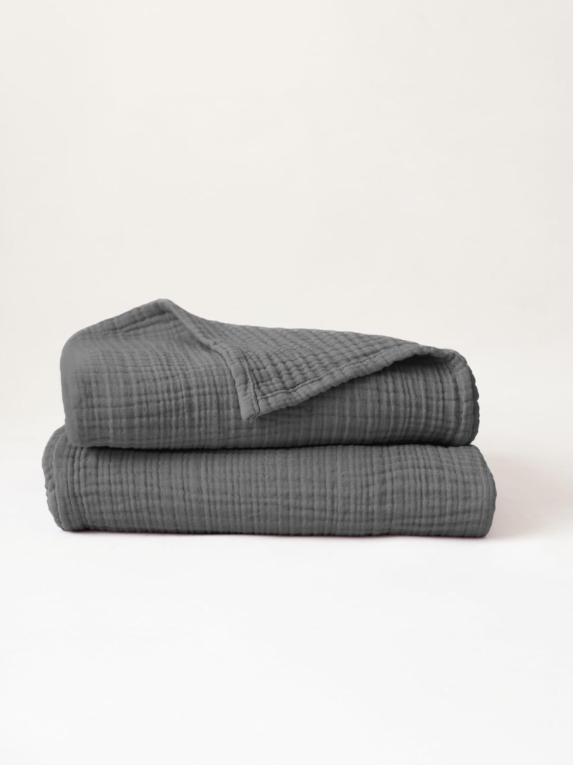 Muslin Bath Towel Pack of 2 32"x67" Inch Large Size, 100% Turkish Cotton, Thin, Soft, Quick-Dry, Lint-Free Bath Towels (Dark Gray, Pack of 2 Bath Towels)
