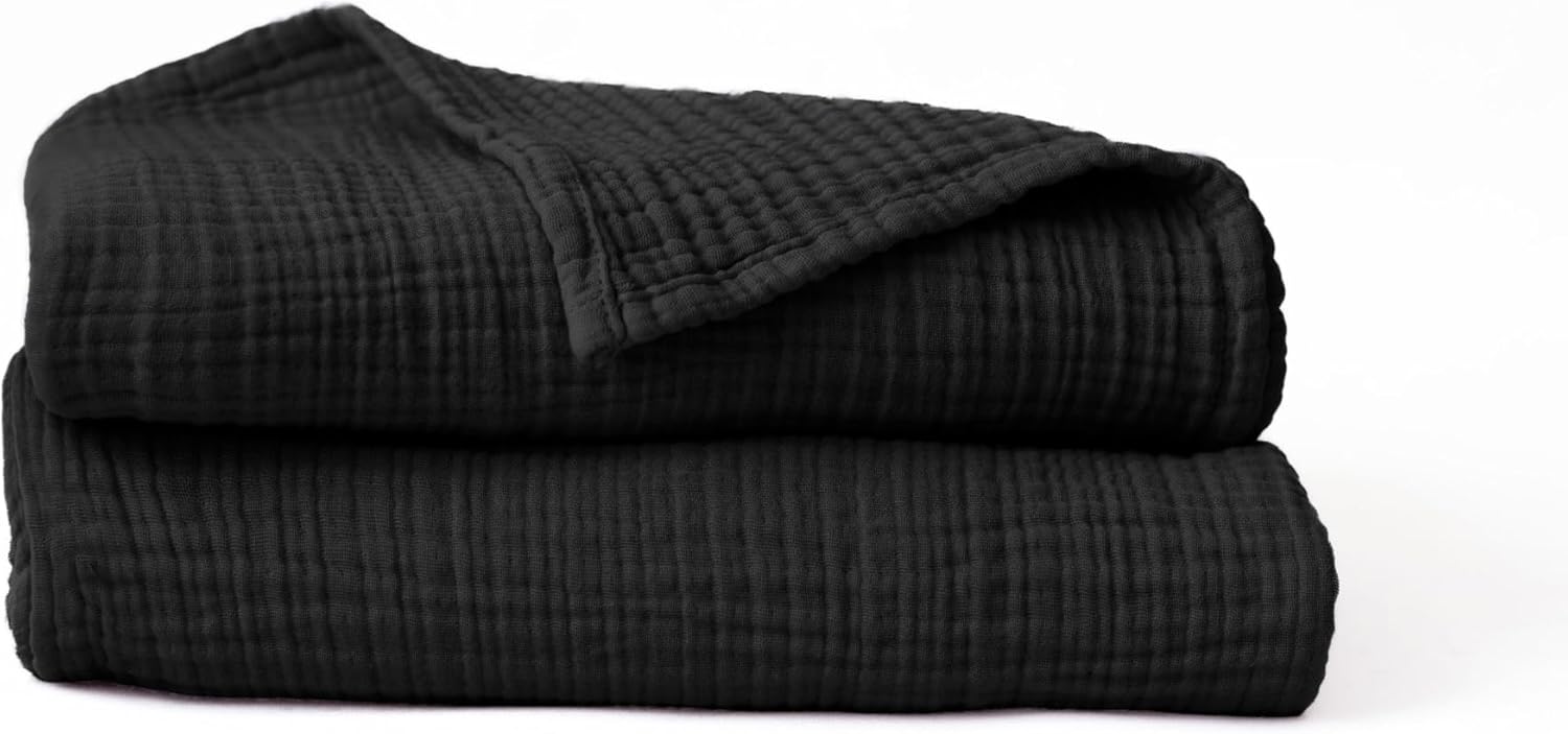 Muslin Bath Towel Pack of 2 32"x67" Inch Large Size, 100% Turkish Cotton, Thin, Soft, Quick-Dry, Lint-Free Bath Towels (Black, Pack of 2 Bath Towels)