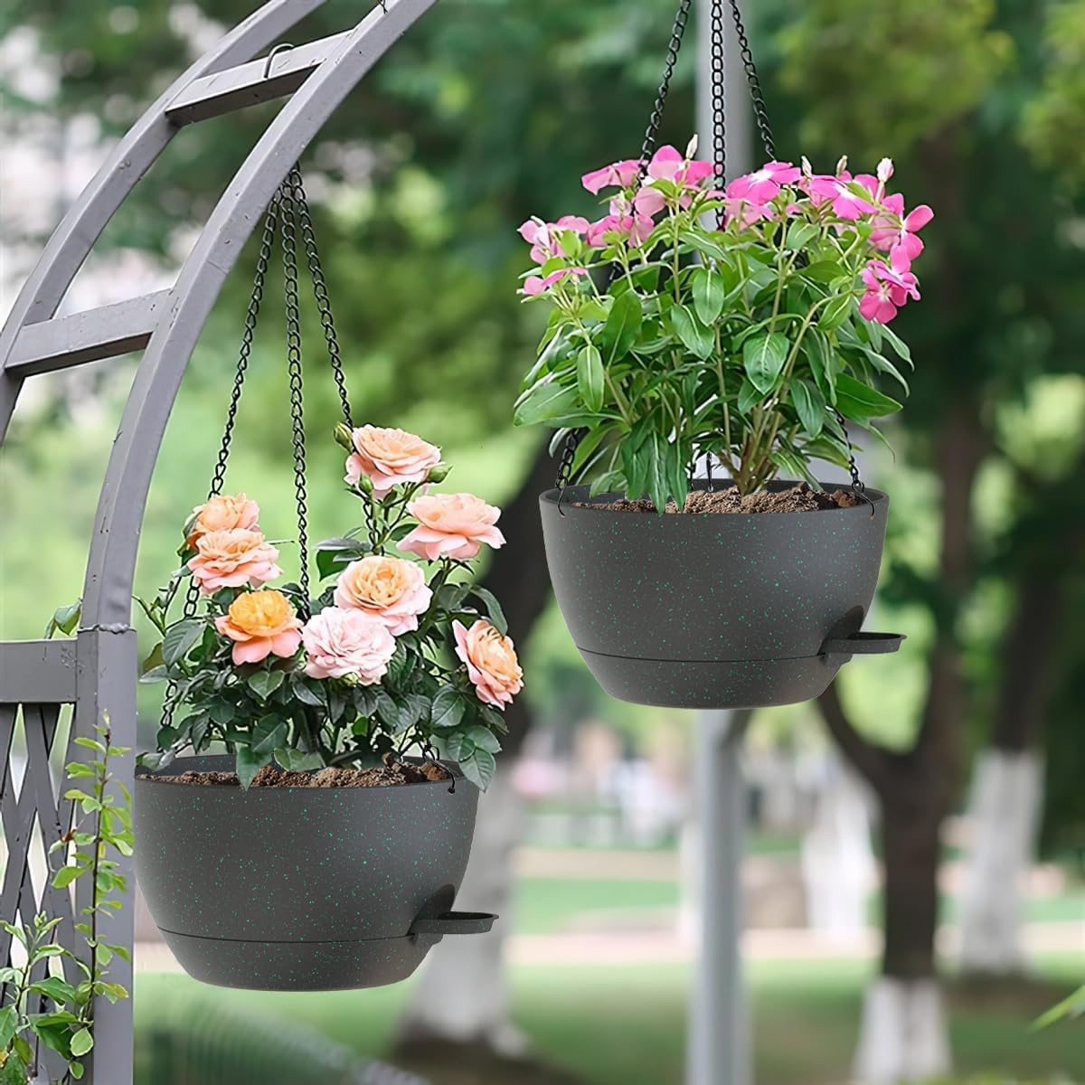 • 【Package Content】Self-Watering Plastic Flower Pots x 2, Chain rack x 2,these Planters are easy to install and suitable for Hanging in various locations such as Balconies, windows and Gardens
