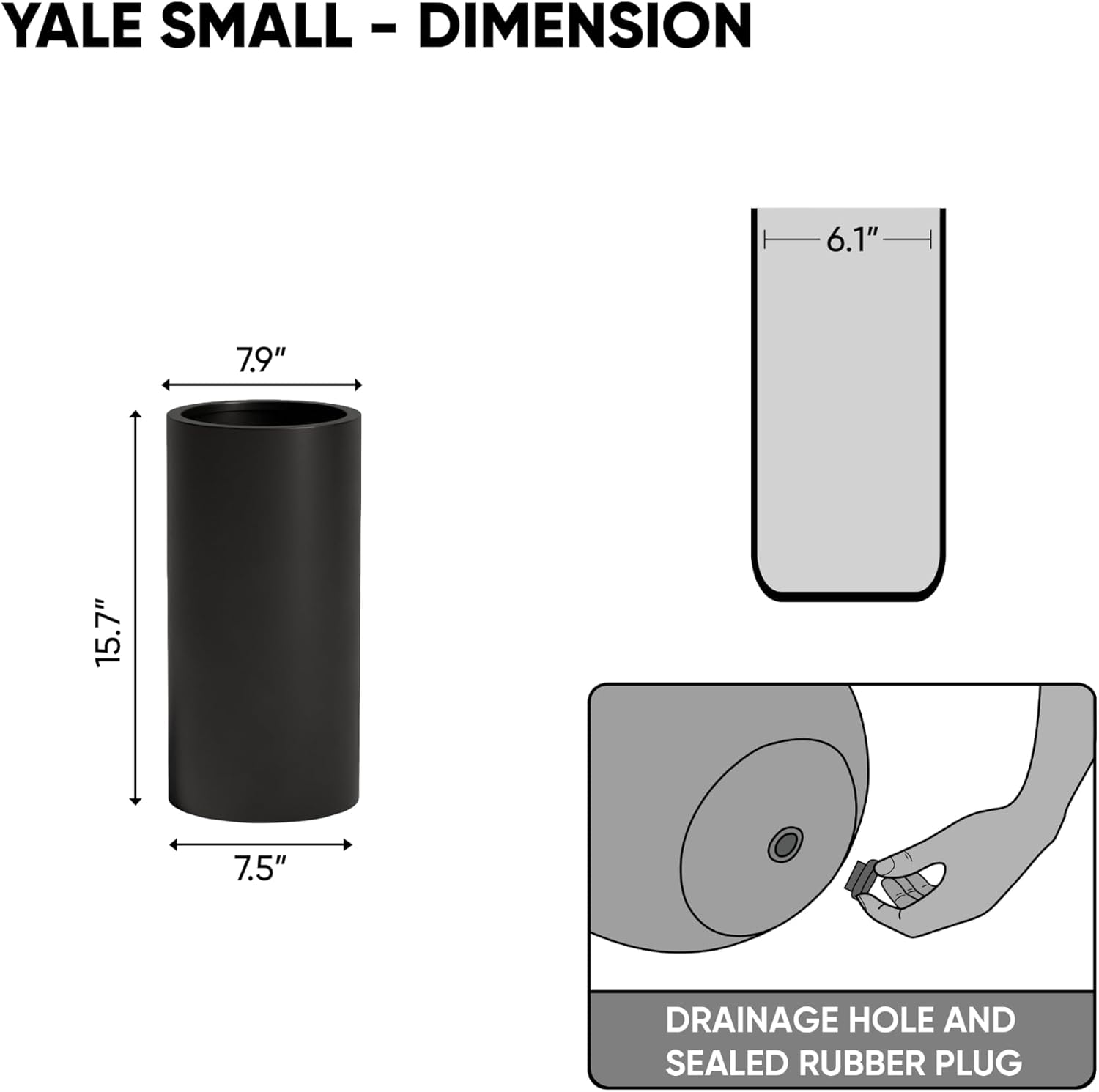 DTY Signature Mount Oxford Tall Outdoor Planter - Small Black 15.7 Inch Height Modern Tall Planter Pot for Indoor & Outdoor Spaces - Stylish Planter for Contemporary Homes and Gardens