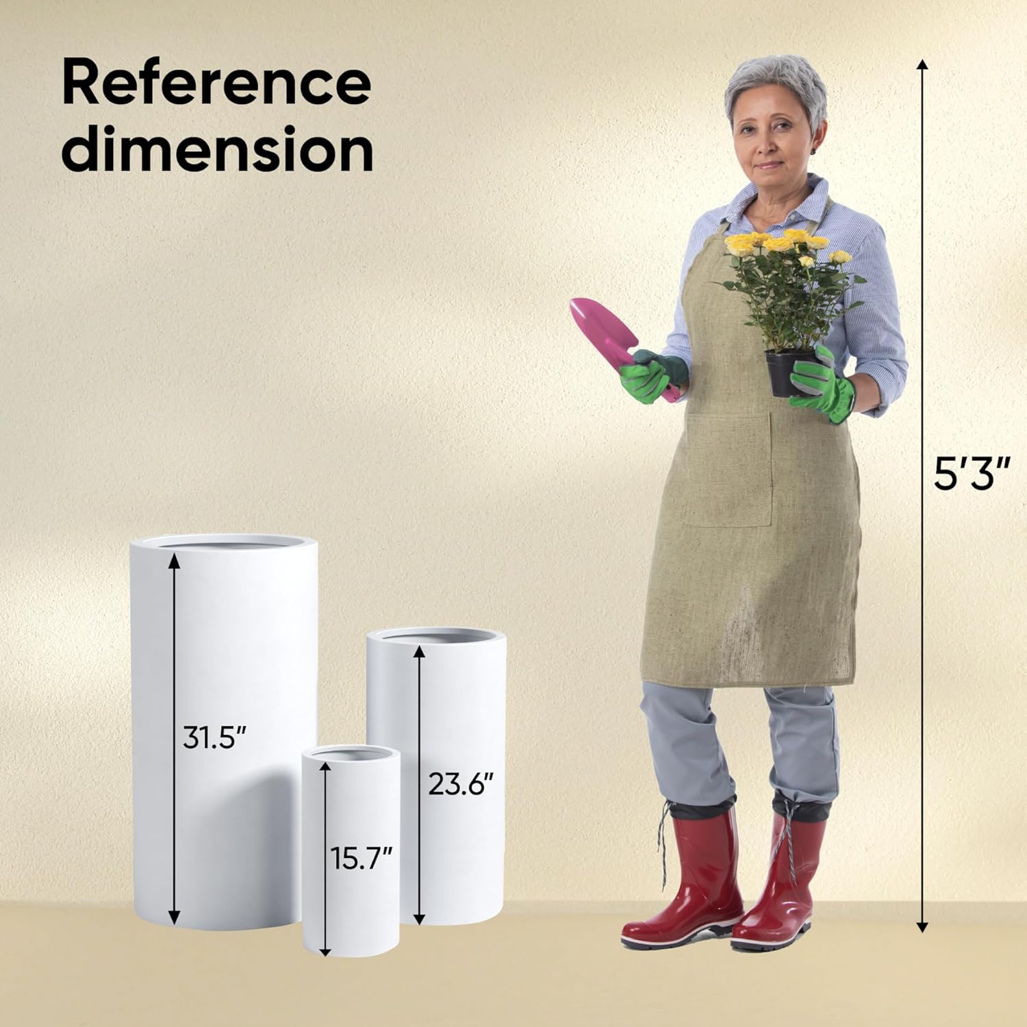 - 𝐏𝐞𝐫𝐟𝐞𝐜𝐭 𝐟𝐨𝐫 𝐋𝐚𝐫𝐠𝐞 𝐏𝐥𝐚𝐧𝐭𝐬 & 𝐎𝐮𝐭𝐝𝐨𝐨𝐫 𝐒𝐞𝐭𝐭𝐢𝐧𝐠𝐬: Designed to accommodate larger plants, this planter offers ample depth and space for optimal growth. Whether displayed as a minimalist white planter, a focal tall planter in a room, or grouped with other tall outdoor planters, it remains a versatile addition. The finish also complements bold accents such as a matte black planter or grouped black planters for a cohesive look.