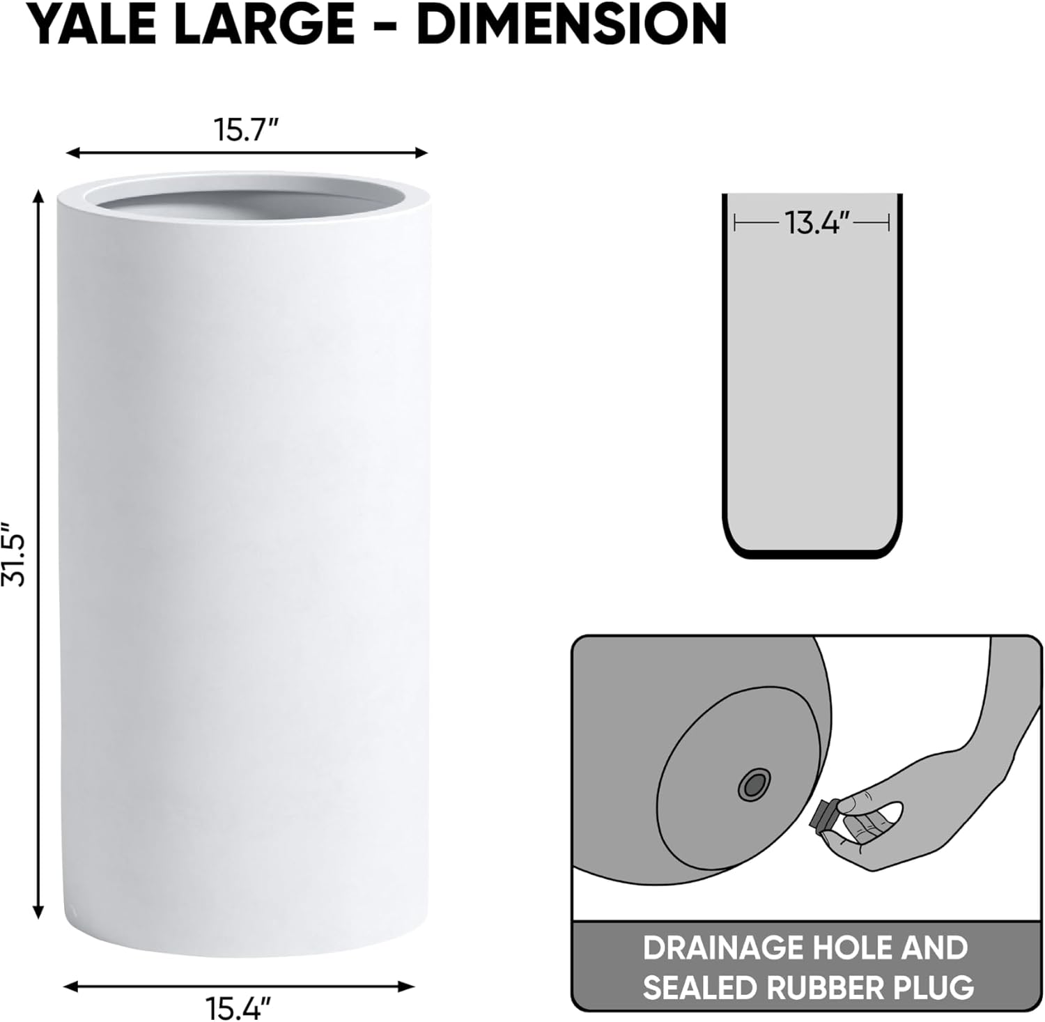 - 𝐏𝐞𝐫𝐟𝐞𝐜𝐭 𝐟𝐨𝐫 𝐋𝐚𝐫𝐠𝐞 𝐏𝐥𝐚𝐧𝐭𝐬 & 𝐎𝐮𝐭𝐝𝐨𝐨𝐫 𝐒𝐞𝐭𝐭𝐢𝐧𝐠𝐬: Designed to accommodate larger plants, this planter offers ample depth and space for optimal growth. Whether displayed as a minimalist white planter, a focal tall planter in a room, or grouped with other tall outdoor planters, it remains a versatile addition. The finish also complements bold accents such as a matte black planter or grouped black planters for a cohesive look.