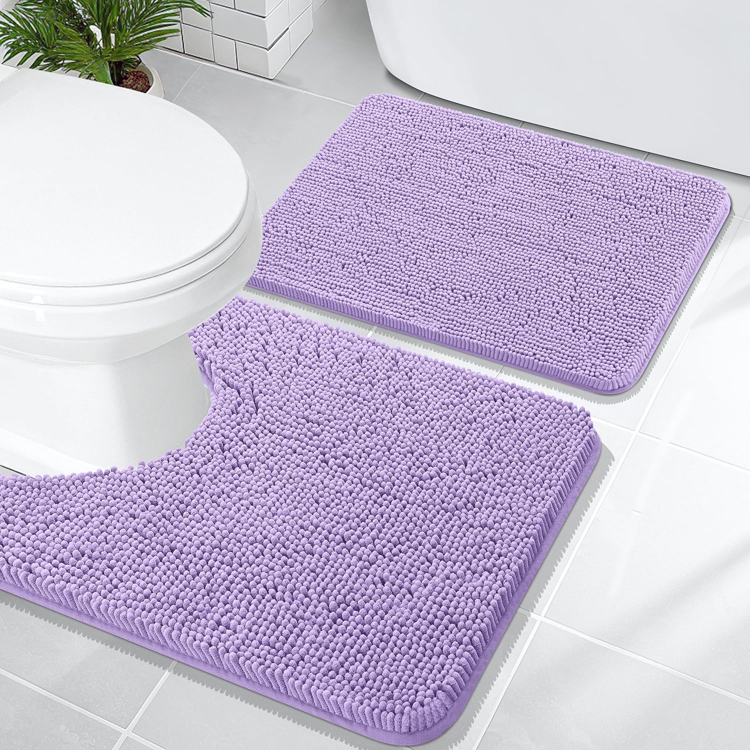 OLANLY Bathroom Rugs Sets 2 Piece, Soft Absorbent Chenille Bath Mats and U-Shaped Contour Toilet Mat Area Rug Set, Machine Washable Bath Carpet, Home Decor Accessories(24"x16"+24"x20", Lavender)