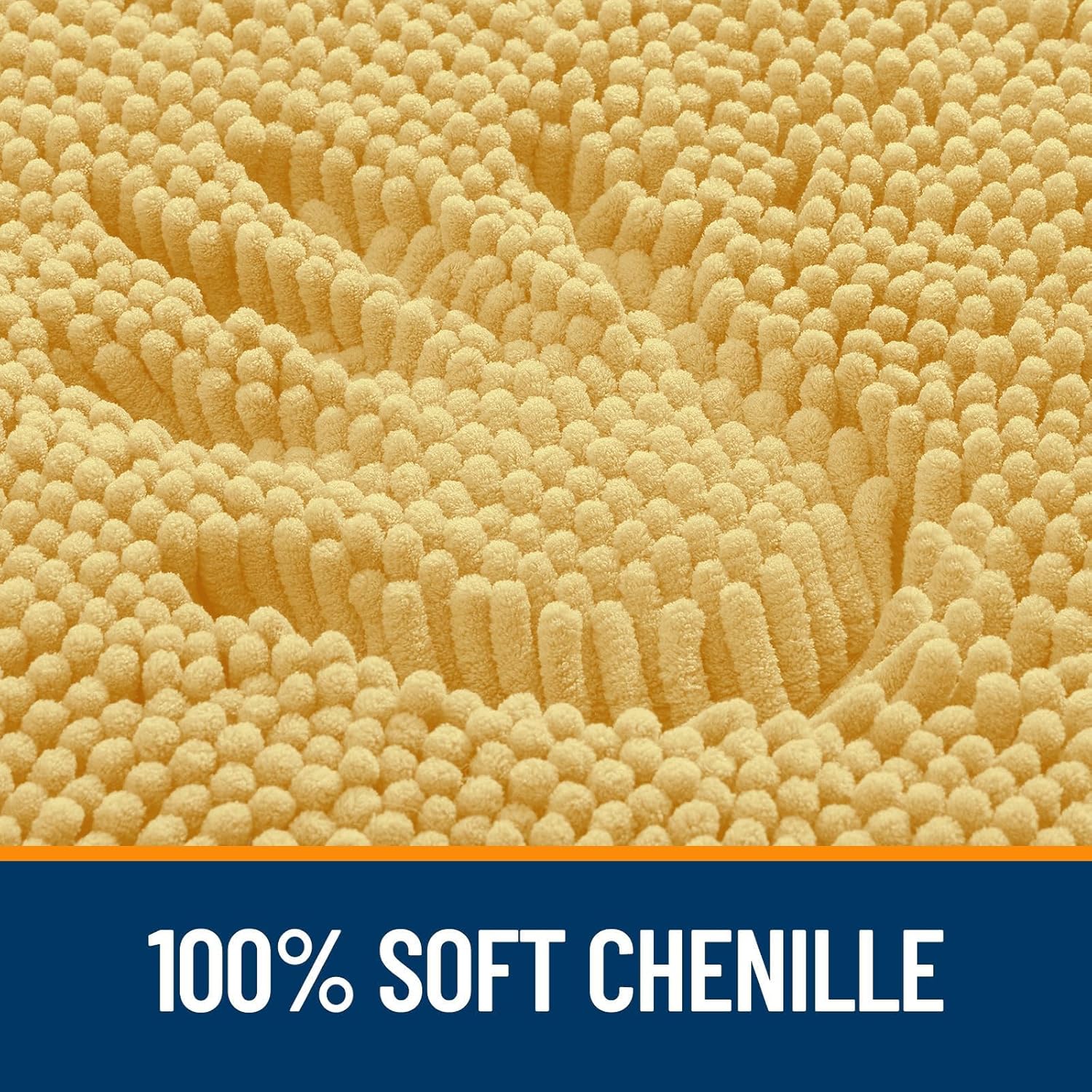 - Soft and Plush Chenille - Wrap your feet in the softest, coziest chenille, creating a warm haven for you, your family, and even your furry friends. The plush pile not only pampers tired feet but also keeps toes delightfully toasty.