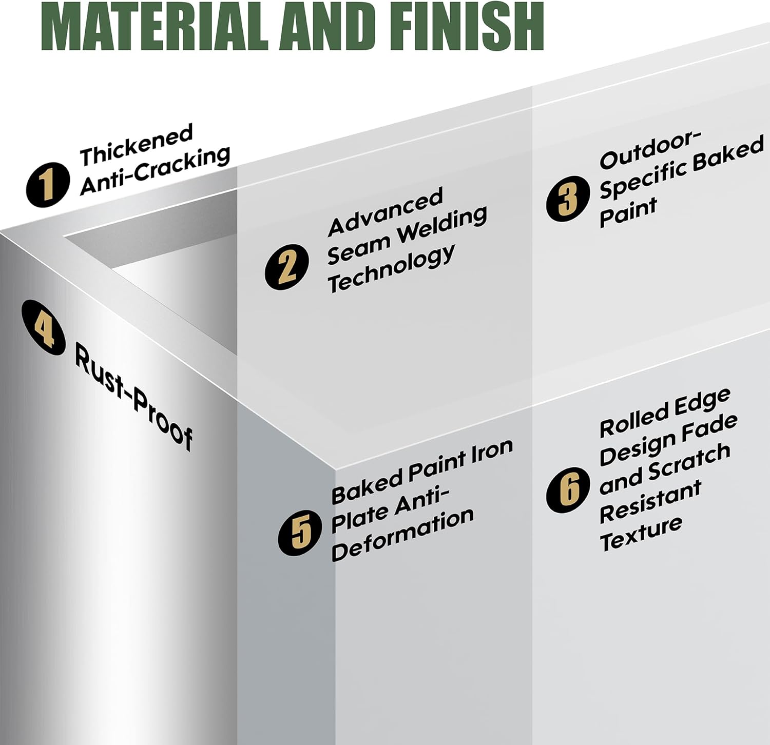 • Military-Grade Rust Defense:The metal planter box forged from outdoor iron with triple-layer baked enamel finish, giving it a luxurious metallic finish and unique texture, ensures that planter is durable and strong,our planters laugh off coastal salt, Midwest snow, and desert sun.