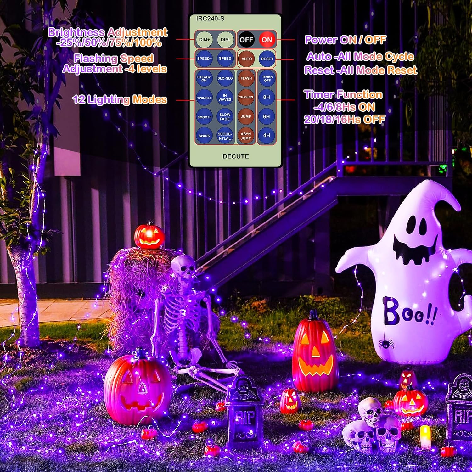 - 13 Lighting Modes Halloween Fairy String Lights - The Halloween fairy string light with 13 Working Modes: Steady on, Slo-Glo, Twinkle, In waves, Smooth, Slow fade, Spark, Seque-Ntlal, Flash, Chasing, Jump, Asynjump and Auto. DIY the best mode for your own decoration.