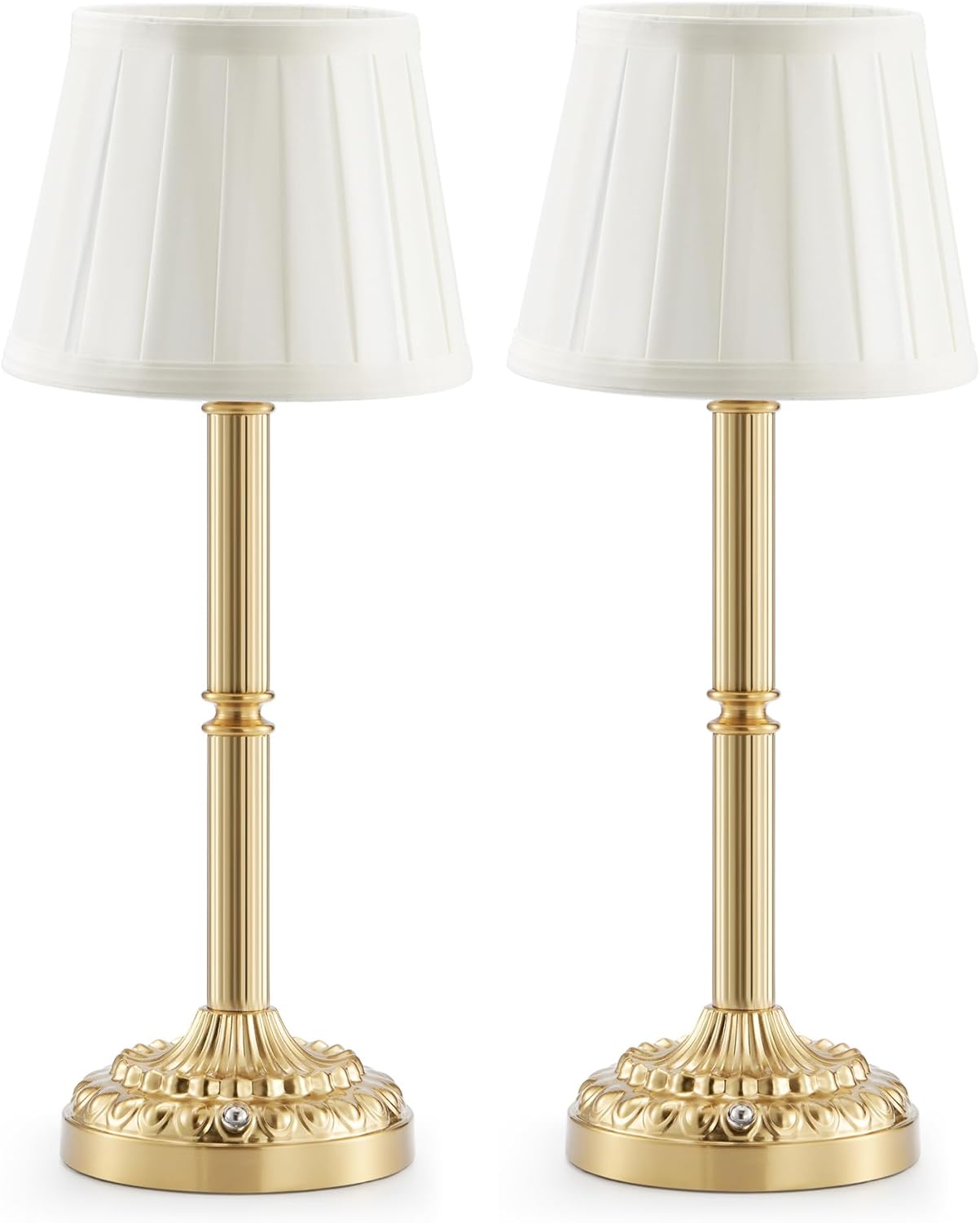 Rechargeable Cordless Table Lamps Set of 2 – Small Battery Operated Lamp, 3-Level Brightness Dimmer, Portable Wireless Lighting for Restaurant Dining Bedside Kitchen Living Room Patio, Vintage Brass