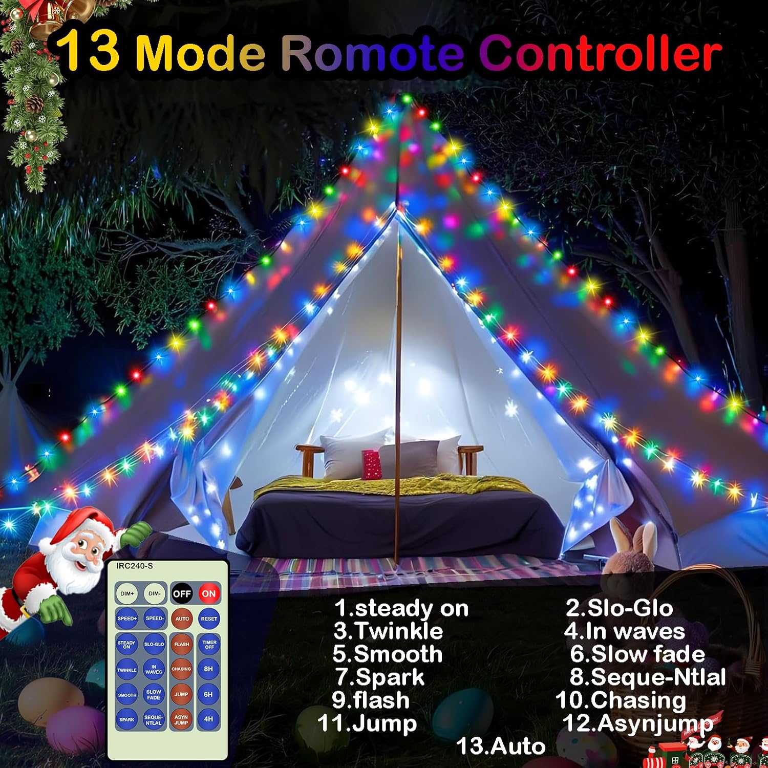 - 13 Lighting Modes Christmas String Lights - Each fairy string light's length is 164 feet with 500 Leds. With 13 Working Modes: Steady on, Slo-Glo, Twinkle, In waves, Smooth, Slow fade, Spark, Seque-Ntlal, Flash, Chasing, Jump, Asynjump and Auto. DIY the best mode for your own decoration.