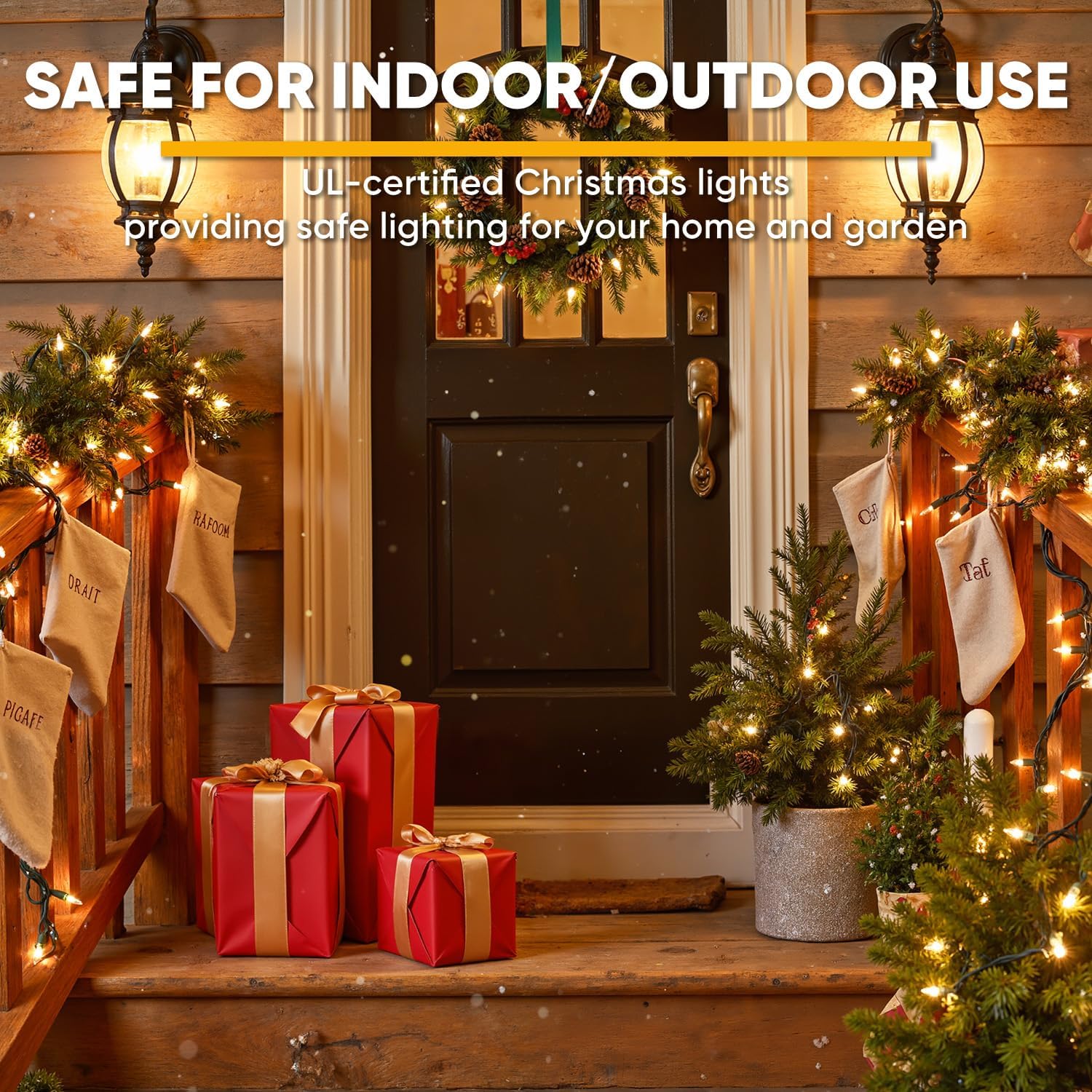 - Independent Lighting & Durability: The bulbs feature a clip-on design that prevents loosening or falling off. Each of the warm white christmas lights bulb illuminates independently, so even if one goes out, the rest will stay lit without affecting each other, is a very special design. Spare bulbs and fuses are included for your easy maintenance.