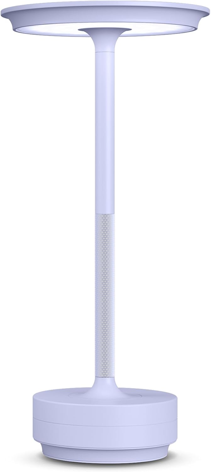 Rechargeable Cordless Table Lamp, Portable 5000mAh LED Touch Table Light, 3 Color Stepless Dimming Battery Powered Table Lamp for Outdoor/Restaurant/Patio.(Light Purple)