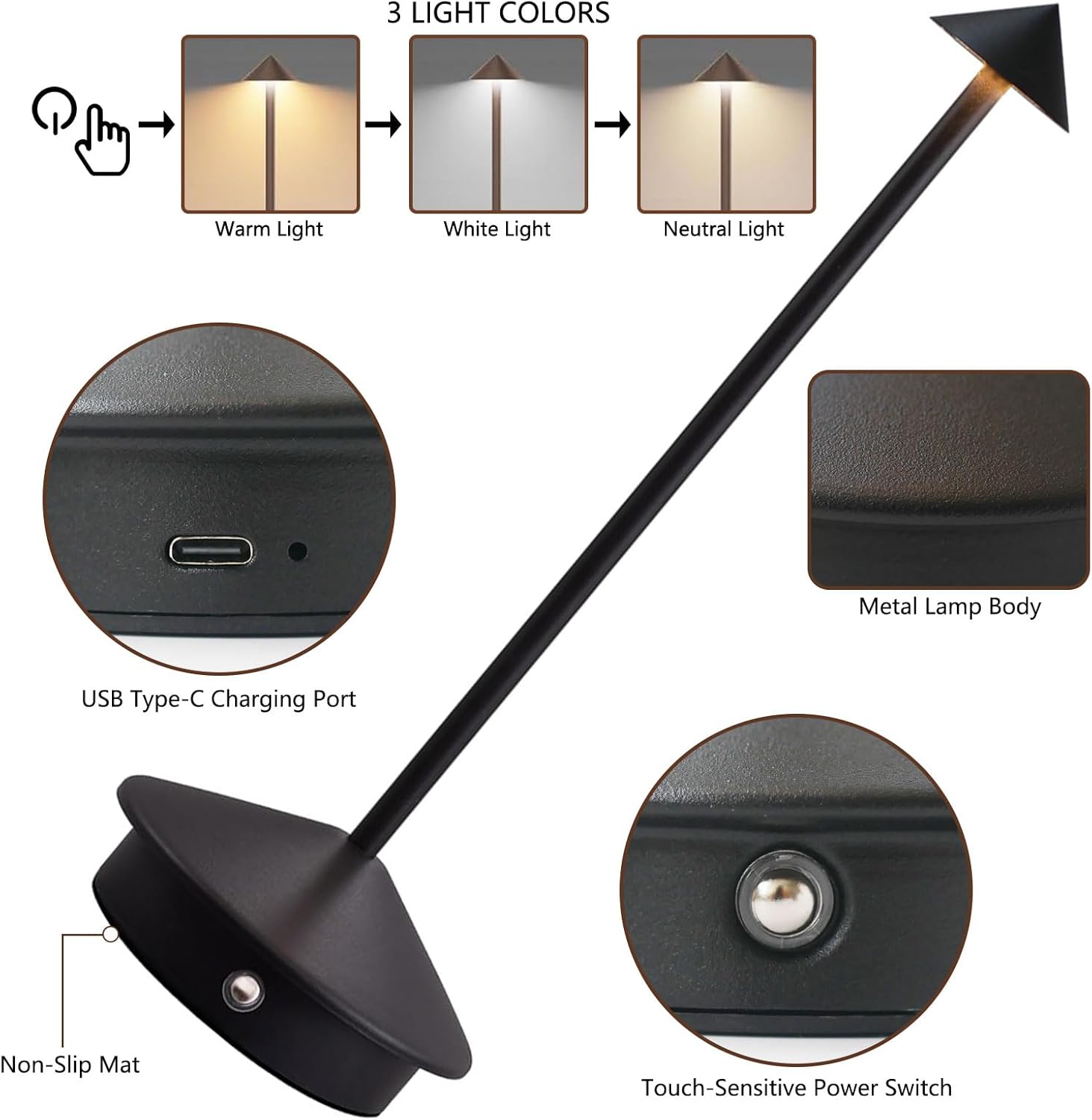 • Portable Cordless Lamp:Say goodbye to cords! This lamp is designed to be cordless and can be powered by USB, giving you the freedom to use it anywhere. Ideal for use while reading, working, studying or resting, it can be placed on the dining table, bedroom, living room, bedside, patio, bar, camping and other places, home decor.