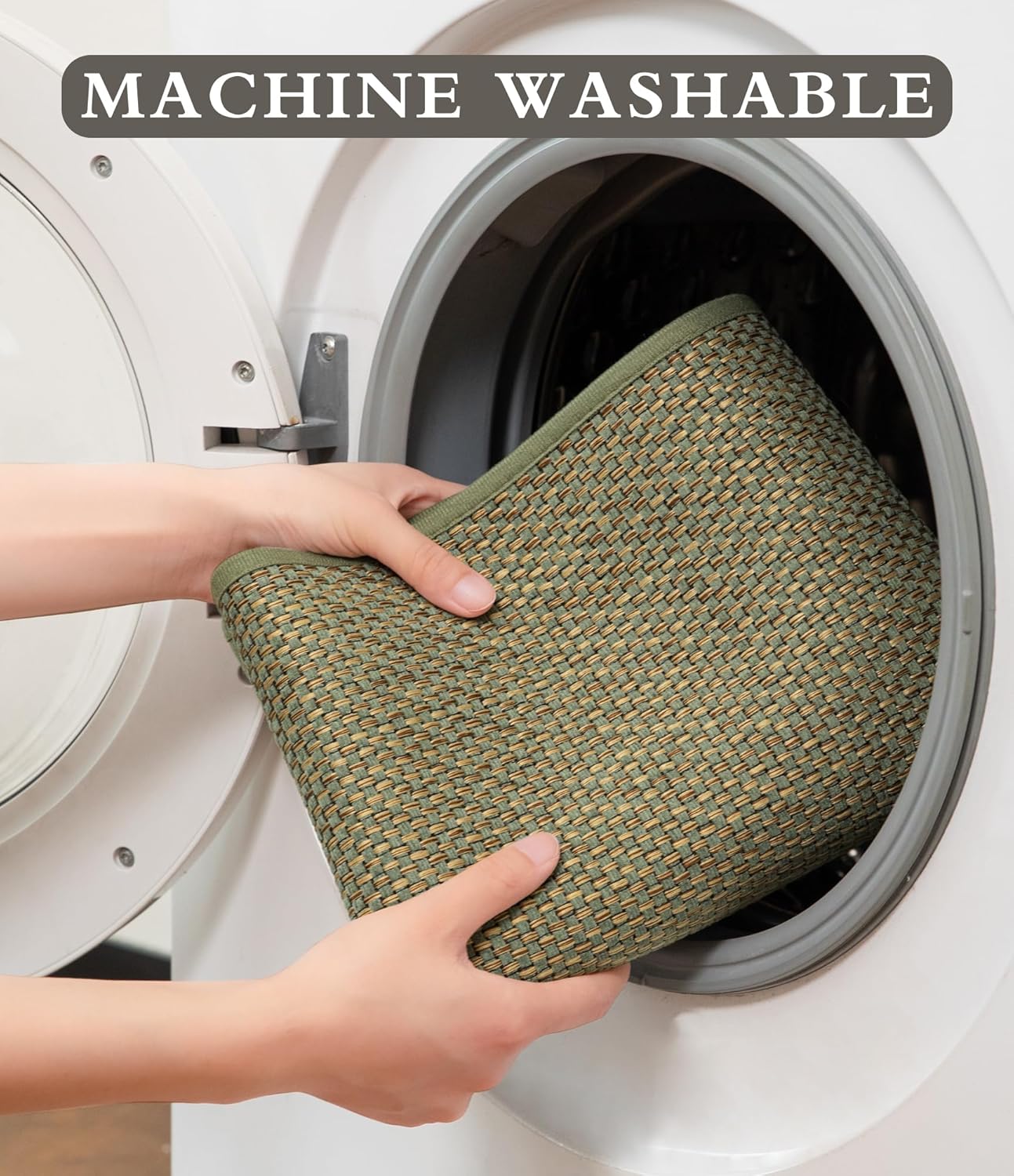 • Upgraded Easy jute Desgin: This bath mat is power-loomed with upgraded yarns-Integrating decoration and durability. The heavier and thicker threads are applied to make sure the pattern will be more durable and compact.