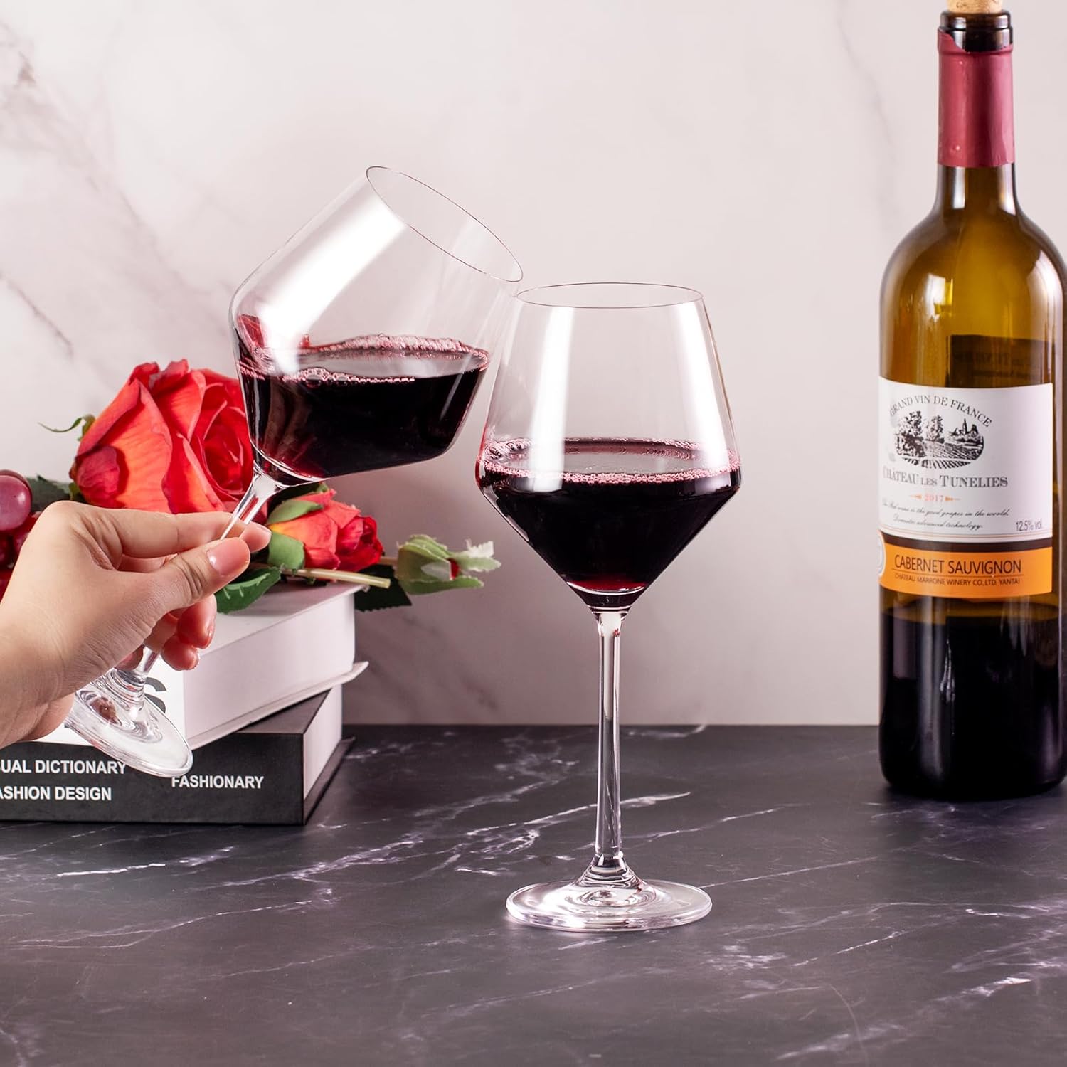 KAMMAK Wine Glasses Set of 2, 15 oz Hand Blown Crystal Bordeaux Wine Glasses, Thin Rim & Long Stem, Perfect for Red & White, Daily Use, Wedding Anniversary or Birthday Gift with Gift Box, S83BG45