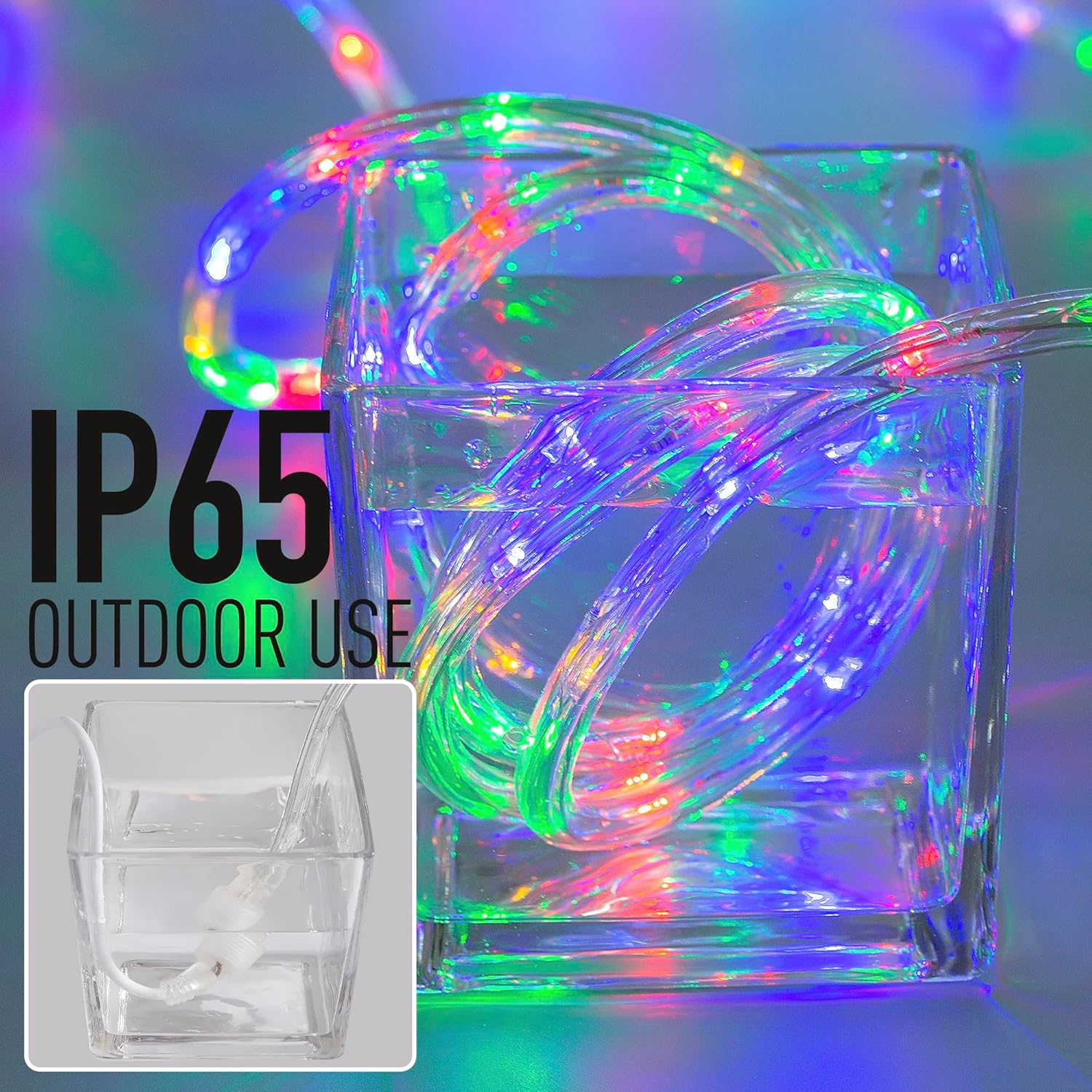 Waterproof LED Rope Lights, Connectable & Flexible with 8 Modes, Outdoor Lighting for Deck, Garden, Pool, Patio & Christmas Decor (Multicolor, 20ft)