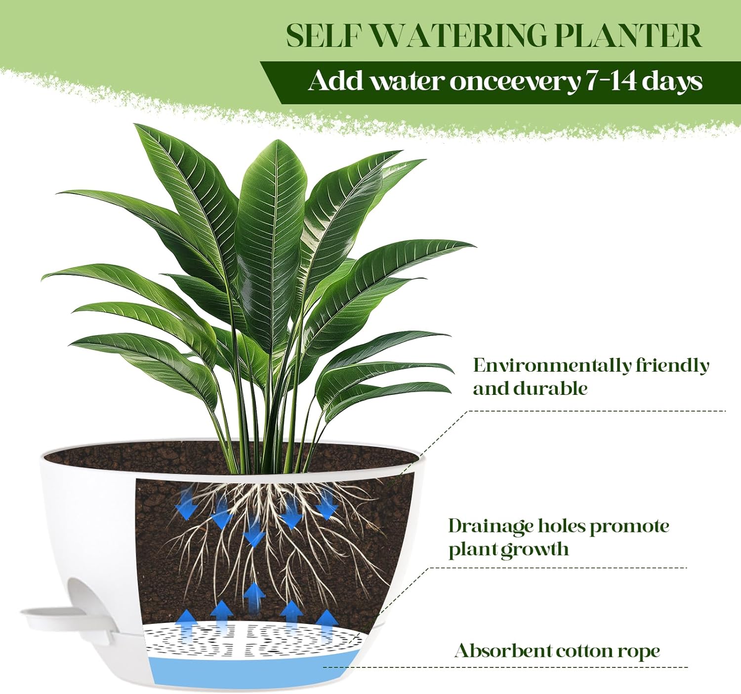 • 💧 EASY WATER MANAGEMENT: Patented self-watering system delivers water to the roots for up to 2 weeks! Includes water dispenser for easy filling and removable reservoir for easy cleaning.