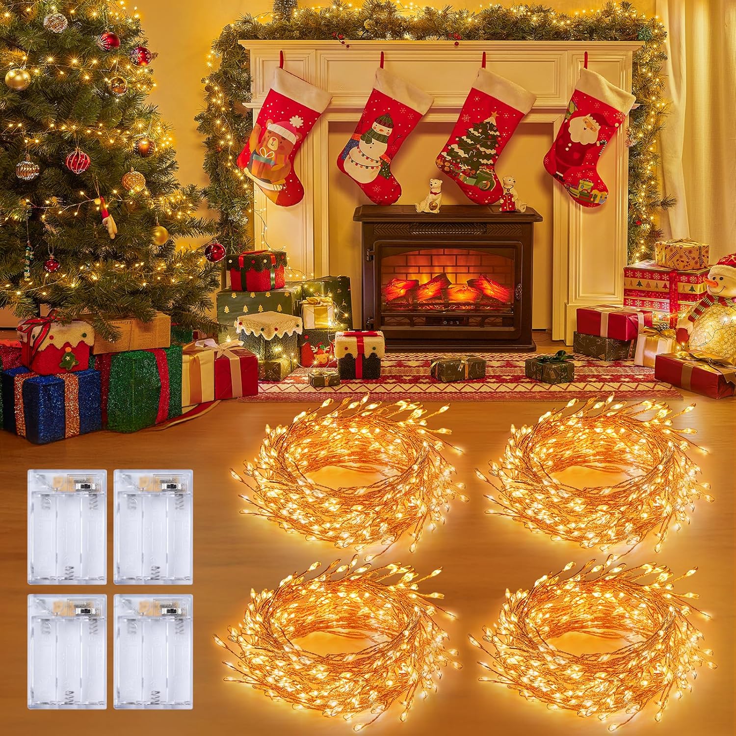 - 【4 Pack Battery Operated LED Fairy Lights】 Illuminate your space with this 10-foot fairy light string! Powered by three AA batteries, its 120 bright LED bulbs cast a warm, inviting glow–ideal for everyday ambiance or festive holiday decor. The thin copper wire and miniature LED add an elegant, cozy accent to your personal sanctuary