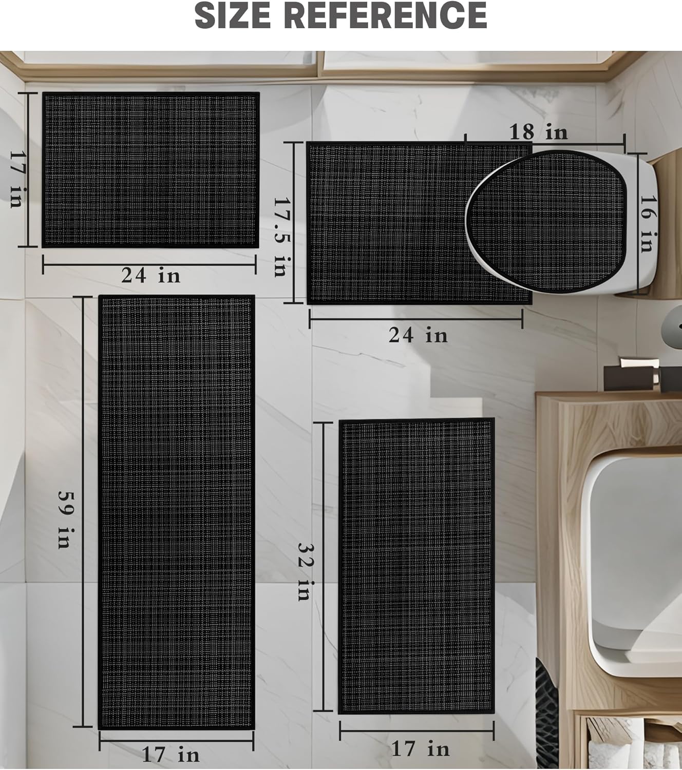 • Comfortable & Versatile: Three-dimensional braided design combined with Flexible lines make the bathroom floor mat softer and cozier. Bring you a comfortable underfoot feeling. Not only provide functionality but also enhance the aesthetic appeal of your bathroom. Anti-slip and comfort with a visually pleasing design and versatile style.