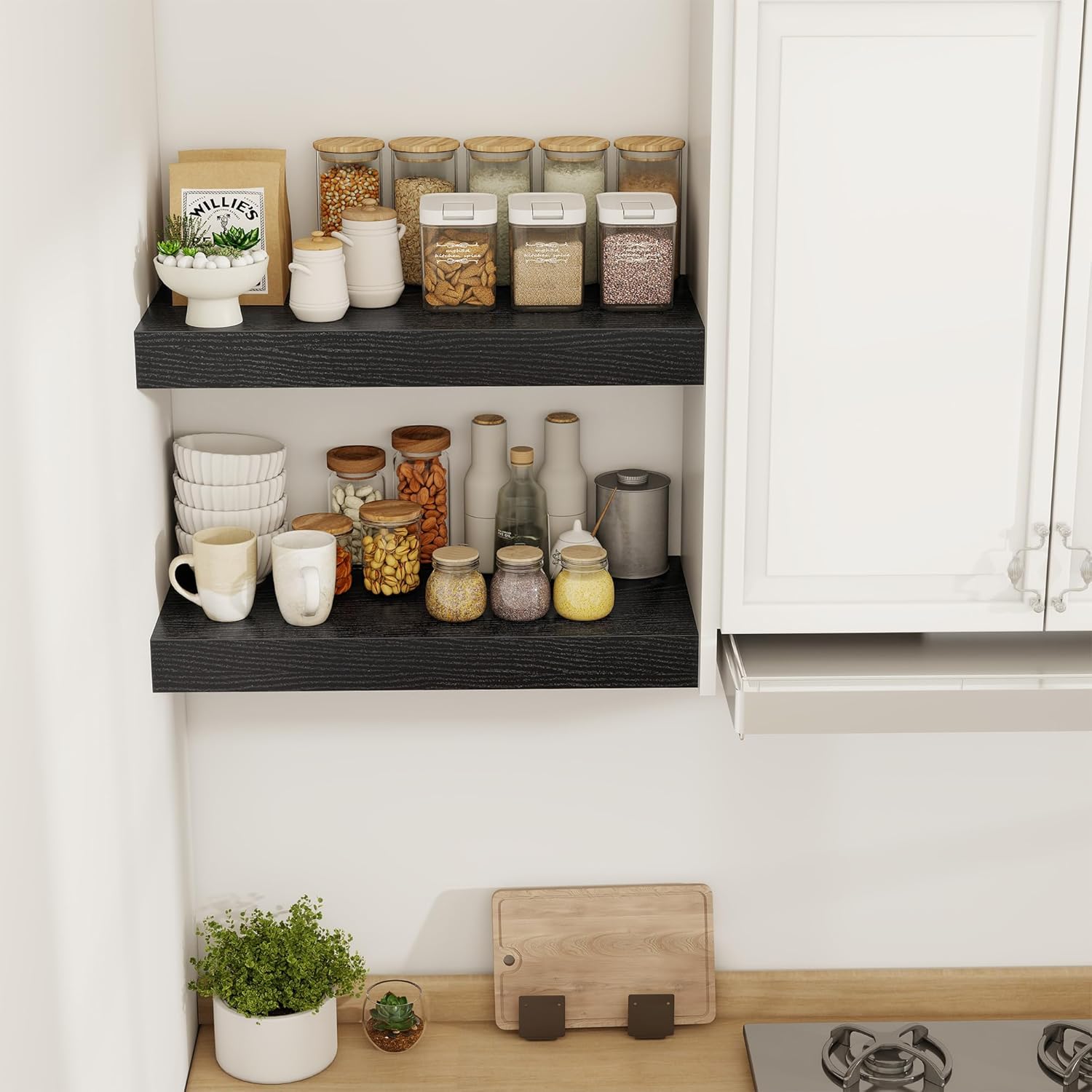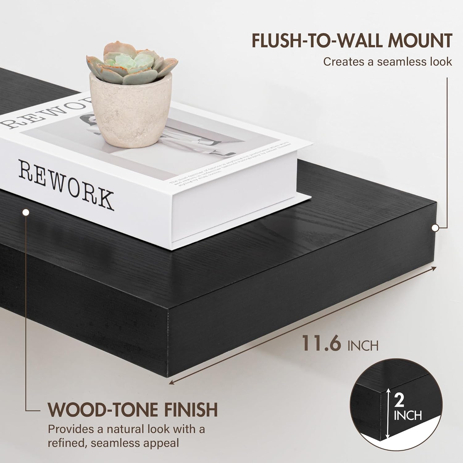 - [GENEROUS DISPLAY & STORAGE] With an expansive 12-inch depth, these floating shelves offer abundant room for books, kitchen essentials, decorative accents, and more. The extra-wide surface accommodates larger items like potted plants, baskets, or framed art, while the 2-inch thick design ensures sturdy support. Perfect for organizing and showcasing your favorite pieces without compromising on style or functionality.