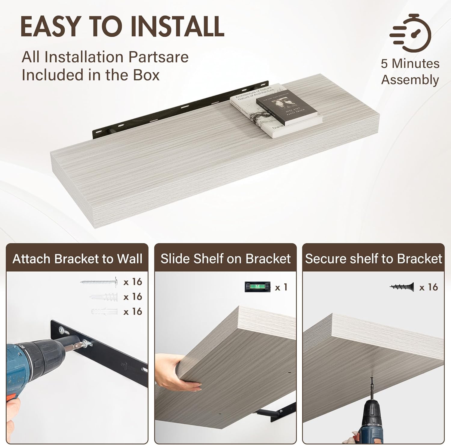 - [EFFORTLESS INSTALLATION] Each set comes with all necessary hardware and a clear, step-by-step guide for quick mounting. Transform your walls in minutes—no special tools required. Whether you're a DIY beginner or a seasoned decorator, these shelves make upgrading your space simple and hassle-free.