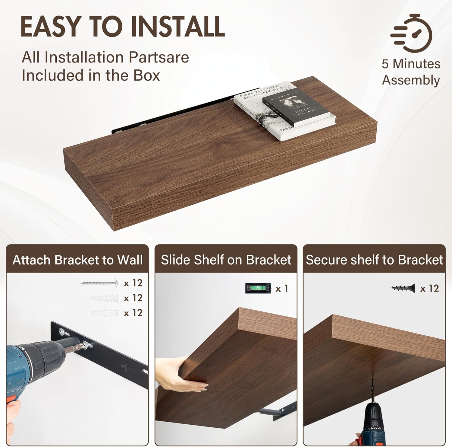 - [EFFORTLESS INSTALLATION] Each set comes with all necessary hardware and a clear, step-by-step guide for quick mounting. Transform your walls in minutes—no special tools required. Whether you're a DIY beginner or a seasoned decorator, these shelves make upgrading your space simple and hassle-free.