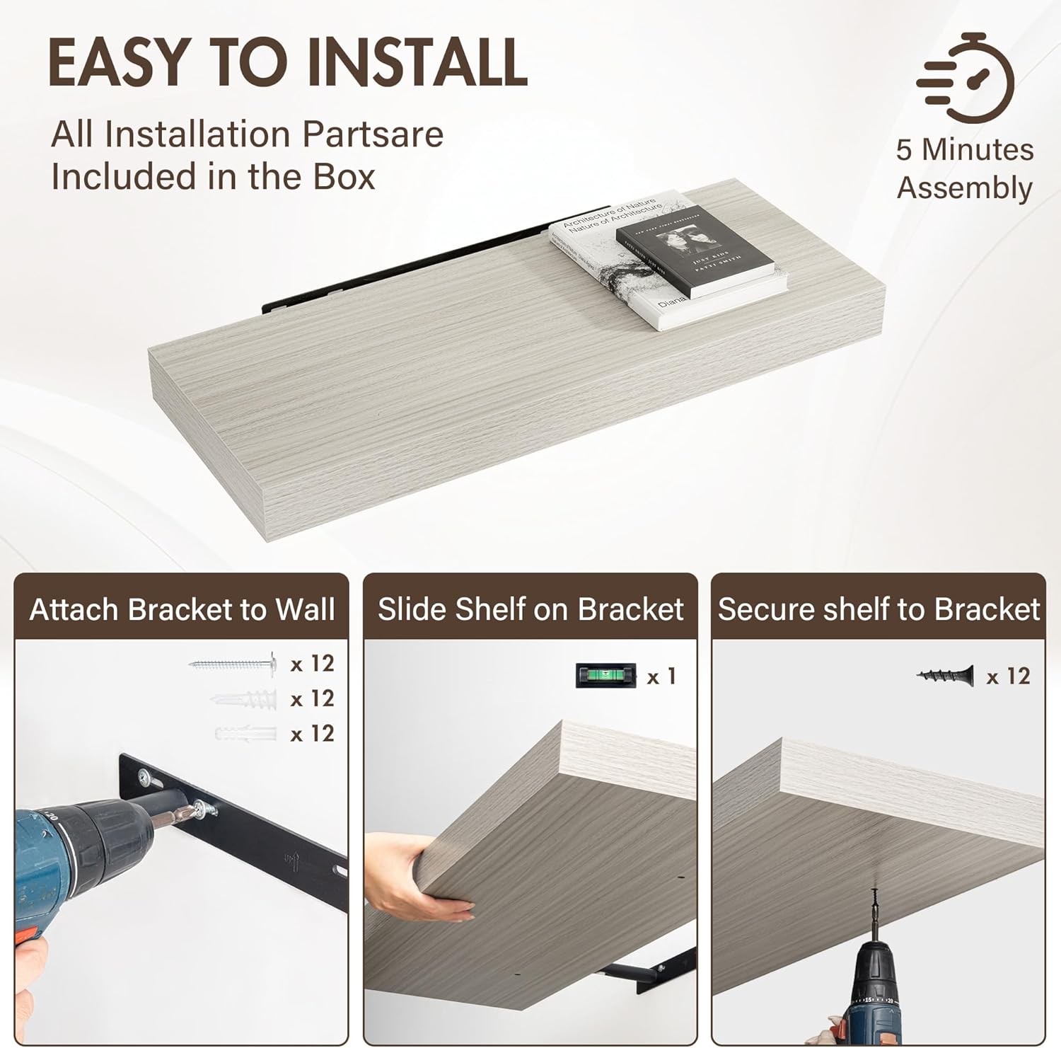 - [EFFORTLESS INSTALLATION] Each set comes with all necessary hardware and a clear, step-by-step guide for quick mounting. Transform your walls in minutes—no special tools required. Whether you're a DIY beginner or a seasoned decorator, these shelves make upgrading your space simple and hassle-free.