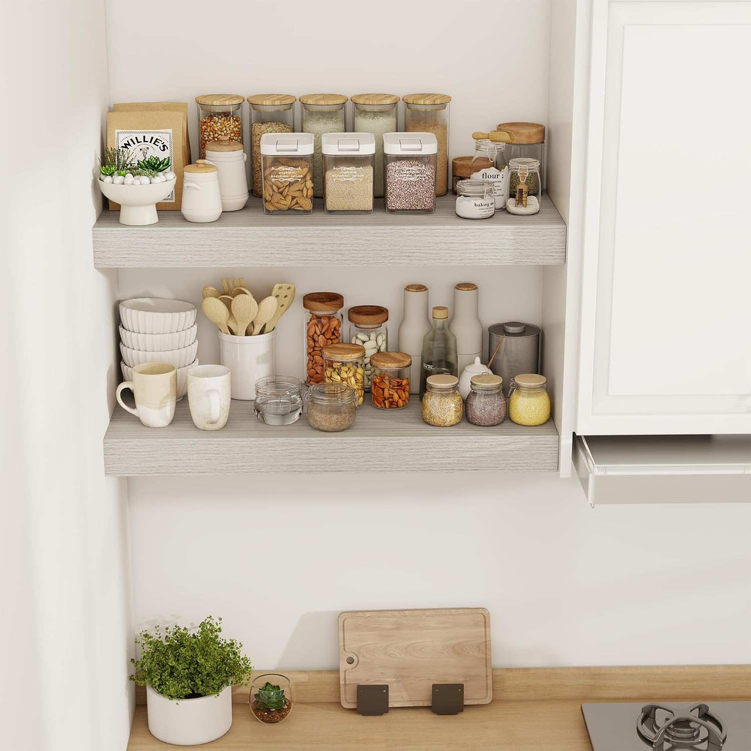 - [GENEROUS DISPLAY & STORAGE] With an expansive 12-inch depth, these floating shelves offer abundant room for books, kitchen essentials, decorative accents, and more. The extra-wide surface accommodates larger items like potted plants, baskets, or framed art, while the 2-inch thick design ensures sturdy support. Perfect for organizing and showcasing your favorite pieces without compromising on style or functionality.