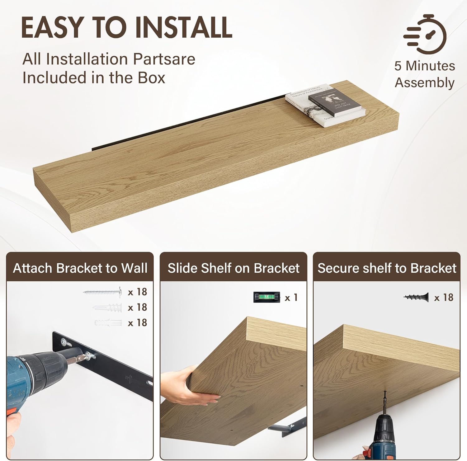 - [EFFORTLESS INSTALLATION] Each set comes with all necessary hardware and a clear, step-by-step guide for quick mounting. Transform your walls in minutes—no special tools required. Whether you're a DIY beginner or a seasoned decorator, these shelves make upgrading your space simple and hassle-free.