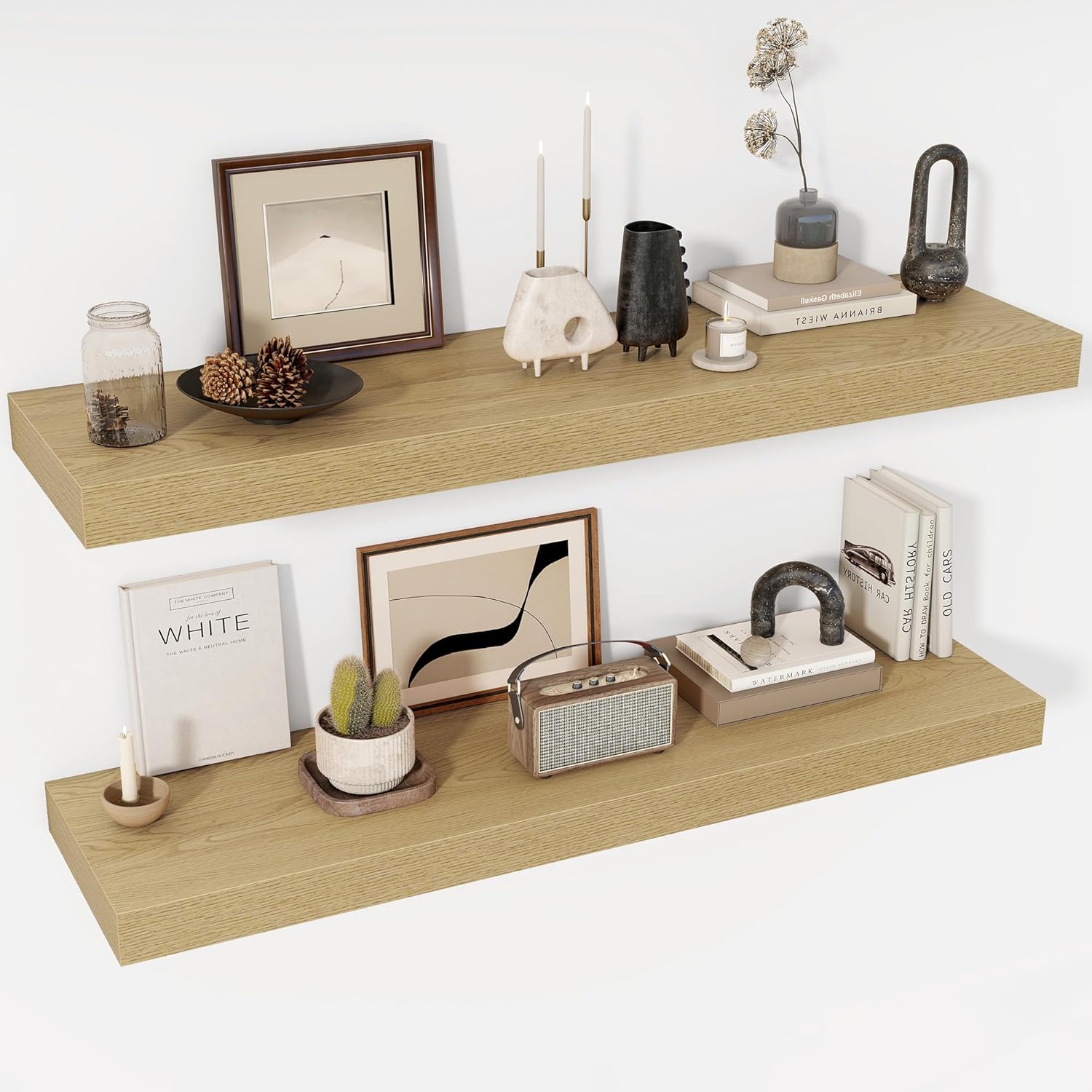 - [STURDY & RELIABLE CONSTRUCTION] Built with a robust hidden mounting system, these shelves securely hold heavy decor and everyday items. The reinforced brackets and included hardware ensure a wobble-free installation, offering peace of mind when displaying delicate ceramics, electronics, or cherished collectibles.